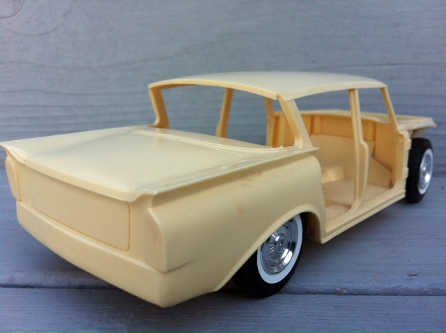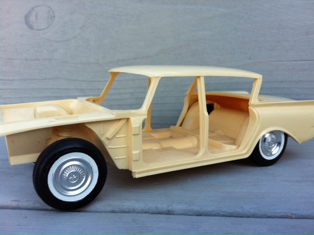 Here’s where my promo model comes in. So one day I was at a local hobby shop and saw this car sitting up on a shelf. I asked the shop owner how much….wait for it, wait for it…15 bucks so I snapped it up. This essentially a 1960 Rambler showing nothing but the unibody. It’s really kind of cool seeing the car this way before final assembly.
