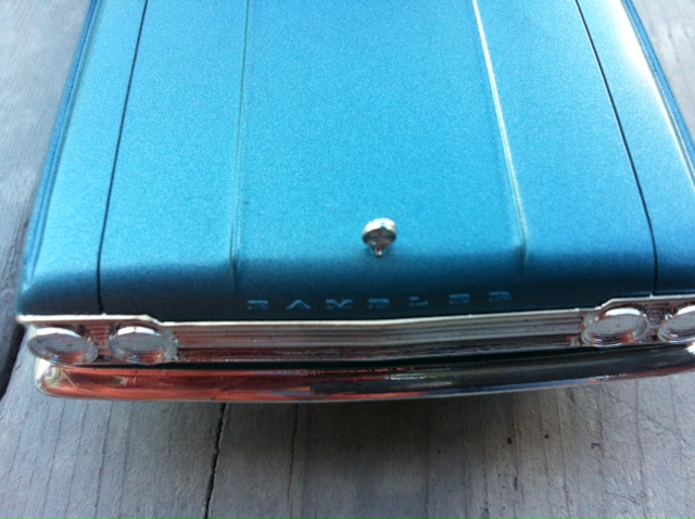 Jo-Han made promo models for both years. There was also a friction model. Many of these promo models were done in aqua/dark blue two-tone plastic. Like the real car, AMC dealers could not give these away to customers. As the 1966 model year neared its end, thousands of the models were given away to institutions such as children’s hospitals and orphan’s homes.