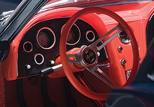 This Vette’s most notable design element is the split rear window, which went away in later versions of the C2. So it was a one-year styling wonder, making the car much more collectible, no matter the scale.