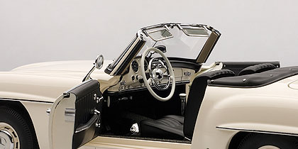 Performance: As with past Autoart models this 190 SL is well executed, starting with its silky cream paint job. There is a clip-on black convertible top that dresses up the Mercedes, but if you display it with the roof down you can really see the gorgeous interior better. And there are two clip-on tonneau covers to choose from for a static display.