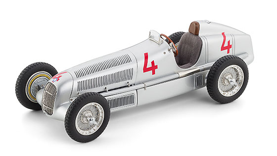 Performance: Racecars were simple looking in the 1930s compared with today’s multi-winged rear-engine creatures. But the W25’s body was streamlined and smooth. CMC’s body is a stellar recreation in its silky smooth silver paint job and Fagioli’s bright red No. 4 twice on both sides. The body panels also feature visible bolts that would hold the panels on the real racer.