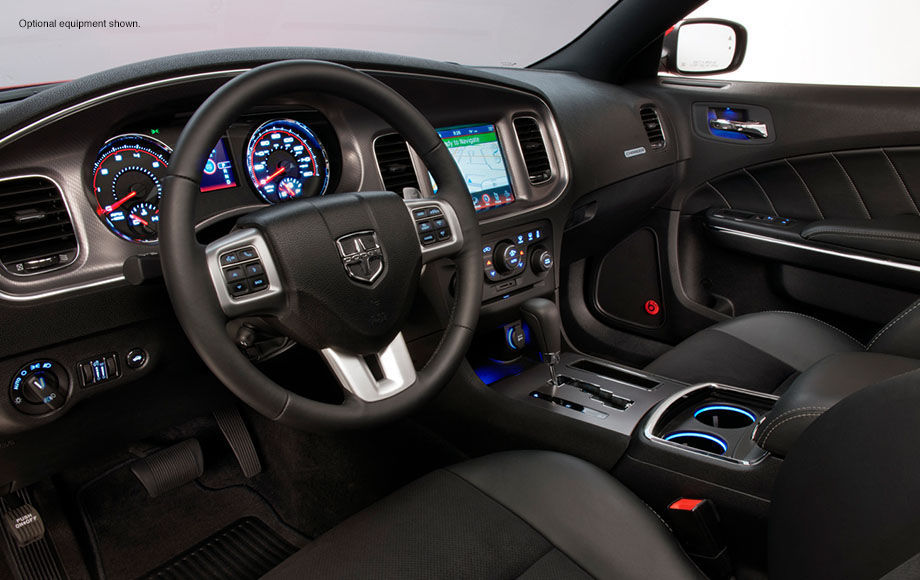Charger comes in seven trims, from the base SE at $25,995 all the way up to the SRT8 Superbee and SRT RWD, both in the mid-$40 grand range. My test car was the R/T, or Road and Track model ($29,995 base), bathed in a bright Daytona blue paint job and featuring black Daytona labeling on the rear quarter panel, and a black rear spoiler. Yes, it looked fast!
