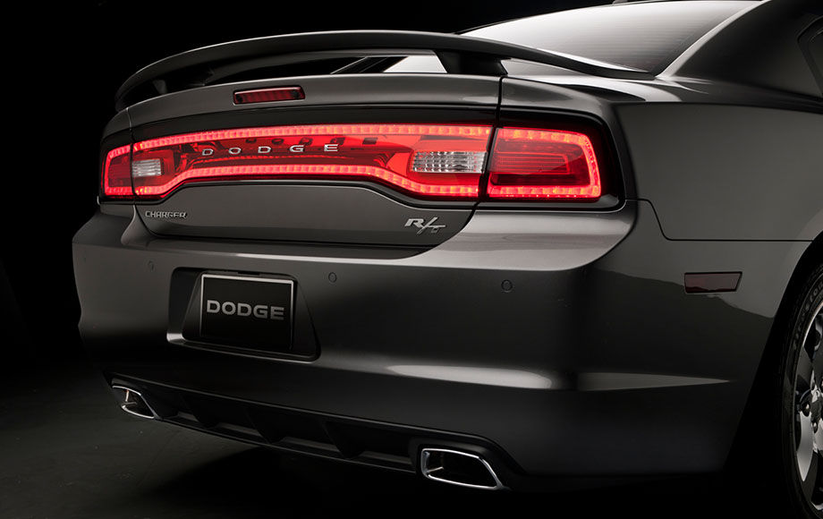The 2013 Dodge Charger‘s rear-end features a stylish light bar, spoiler and dual exhausts.