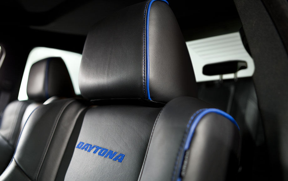 The black leather seats featured blue piping and the Daytona name embedded in the seat back.
