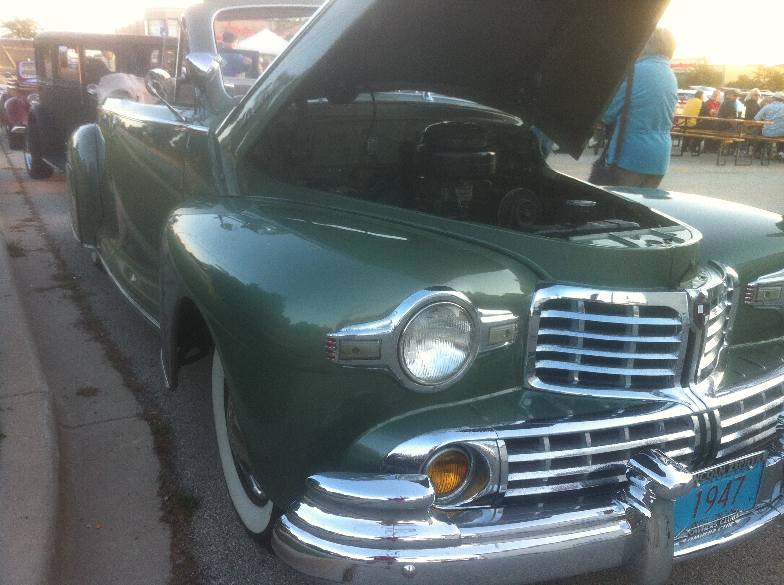 So I dropped by the car show that I go to every once in a while not far from my house and this beauty caught my eye. A 1947 Lincoln Zephyr Convertible. This car is cherry and also famous for a huge V12 engine. I would have loved to hear the owner start it up but he wasn’t around. I posted the image on my Facebook page a short time ago and one of my friends commented that he works with the son of the guy who owns it. Go figure. I told him he should ask for a ride in it or better yet, ask if I could come along. These cars are tough to come by now because of their low production numbers. I saw a couple going for around $70,000.
