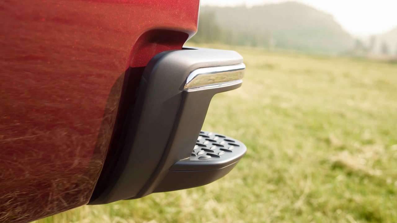 Hits: Handsome macho looking truck with good power, excellent tow capacity and good handling. Much quieter interior than previous model, comfy heated seats, running board, well laid out dash with back-up camera, OnStar, big fold-down storage bin up front and steps to help you get in the bed.