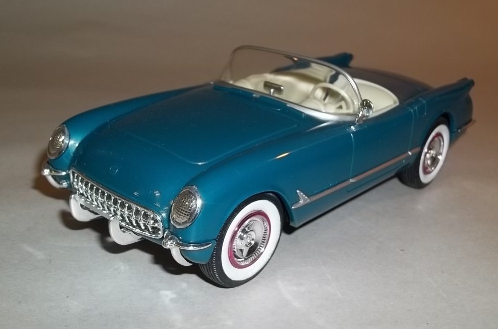 That’s my modus operandi whenever I’m out on my bike. Heck I’ve even been known to see an oncoming classic car and turn around to catch up with it and see if I can talk with the owner. Well one day I saw this 50th Anniversary Corvette, did the turn around thing, looked at the car for a bit, and then knocked on the door. The owner was more than happy to talk about it. If you have to have one good luck with that. The next best thing would be you would be to buy two promo models like these and do some kitbashing. Click on the photo on the left to see my interview with the owner.