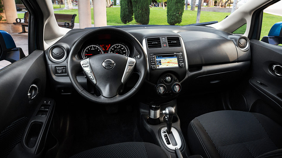That SL package also provides sportier aluminum alloy 8-spoke wheels, push-button start, two-level heated front seats, fog lights, variable intermittent wipers, Sirius satellite radio a rear seat armrest with cup holders and a Divide-n-Hide rear floor compartment. This allows you to flip up the rear cargo floor to hide a few items under it. That, plus the split fold-down rear seats give the Note a lofty 38.3 cubic feet of cargo space, or 18.8 cubic feet when the rear seats are in place for riders.