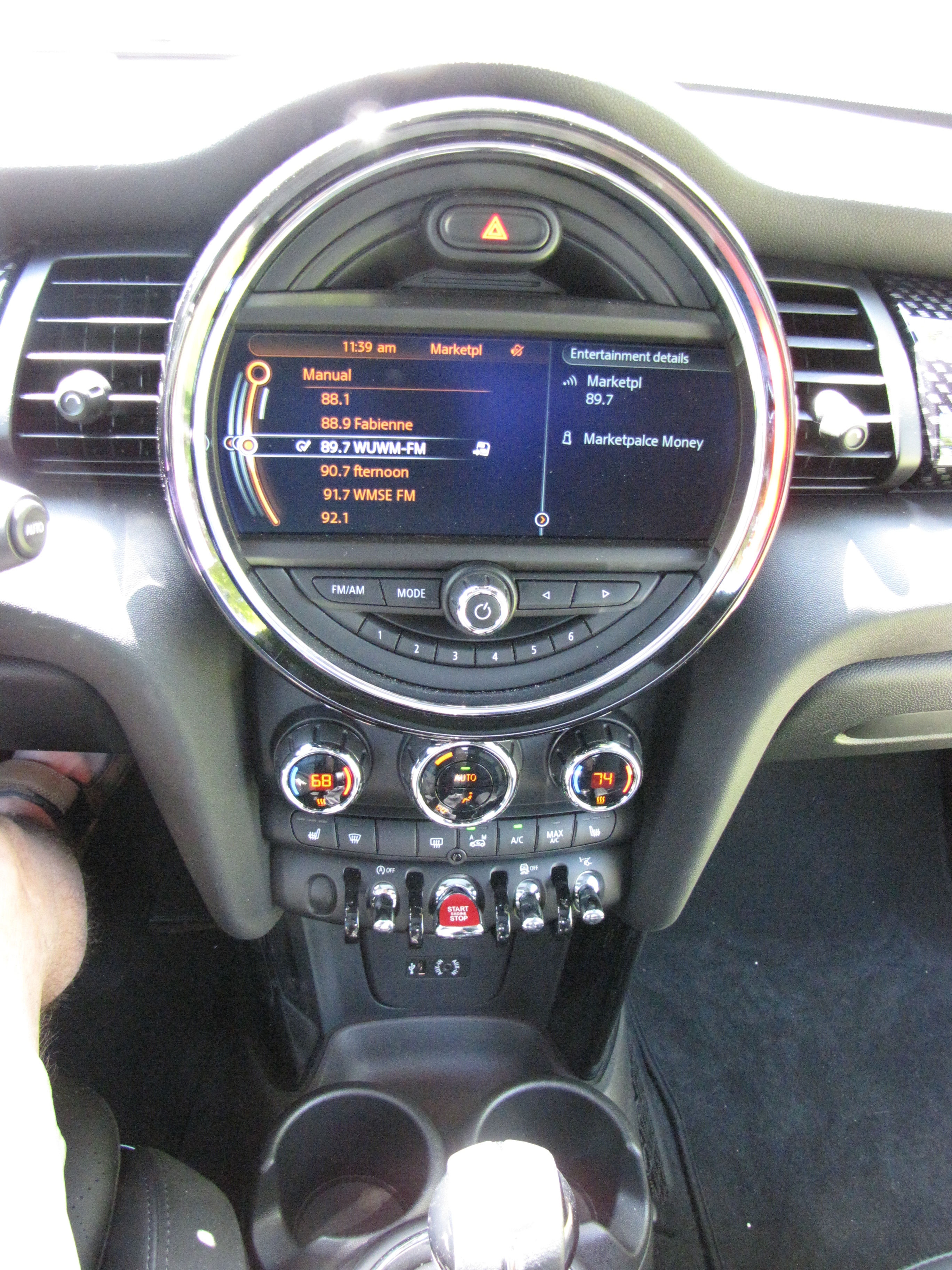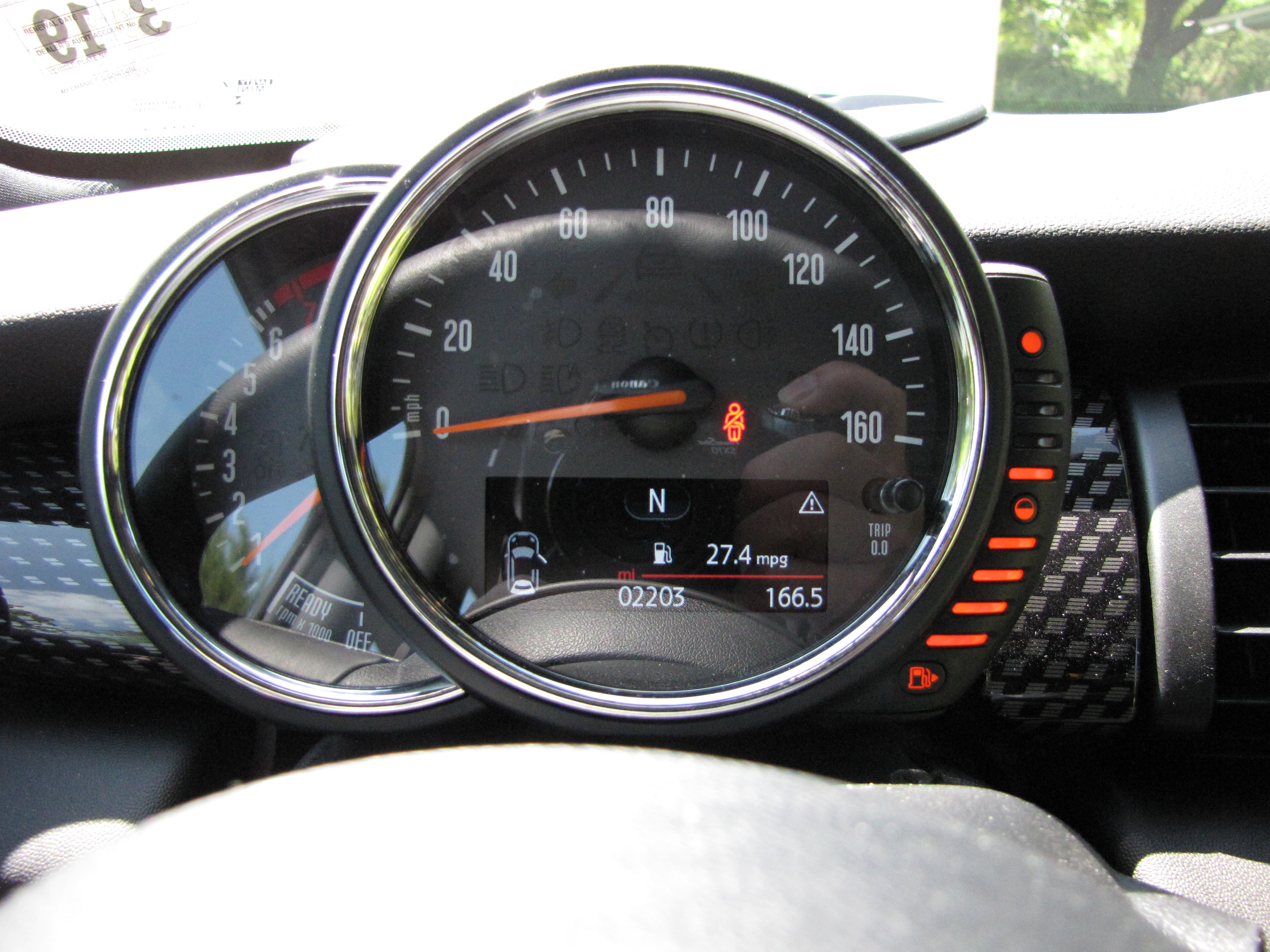 Oh, and MINI has a start/stop function that occasionally shuts the engine off at stoplights, when the clutch is depressed and you’ve stopped. Let the clutch out at all and the engine re-fires. Not sure if our warm weather and the need for air conditioning affected this, but it often did NOT turn off the engine while the car was stopped at traffic lights.