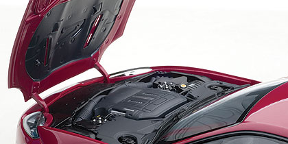 The Jag has Performance Active Exhaust, Adaptive Dynamics Suspension, a lower more aerodynamic ride height, forged aluminum suspension parts, and a rotary gear selector that pops up from the console. You can see that in Autoart’s version too.