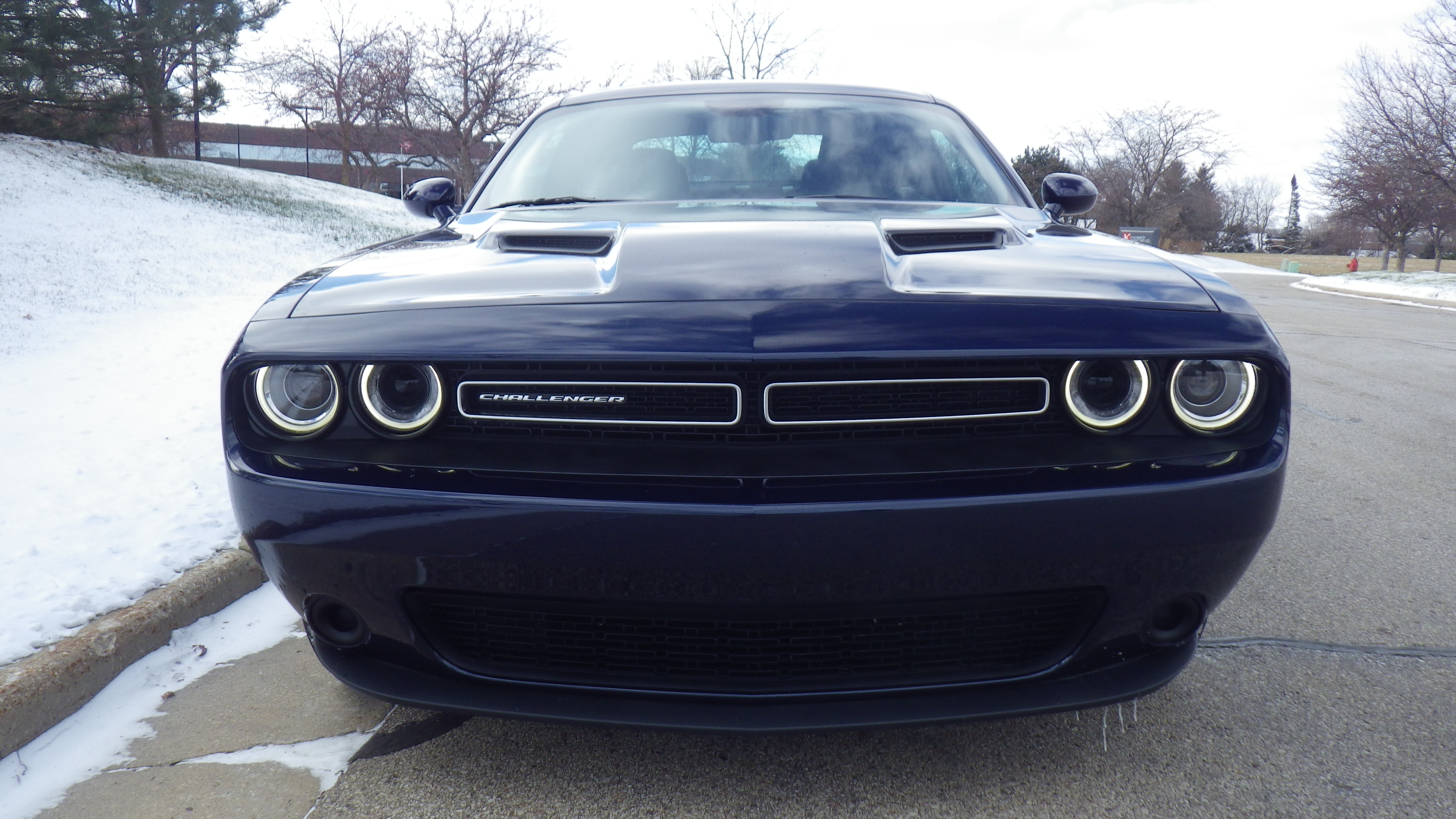 But alas, the test car was not a Hellcat, just the most basic SXT entry-level Challenger in a dark metallic “jazz” blue.