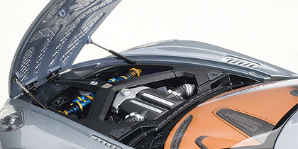 Overall the Aston is made up of 275 metal and plastic parts with 108 being metal and 15 photo-etched. Each car gets 70 free-hand sprays, which contributes much to the deep finish each Autoart model seems to offer.