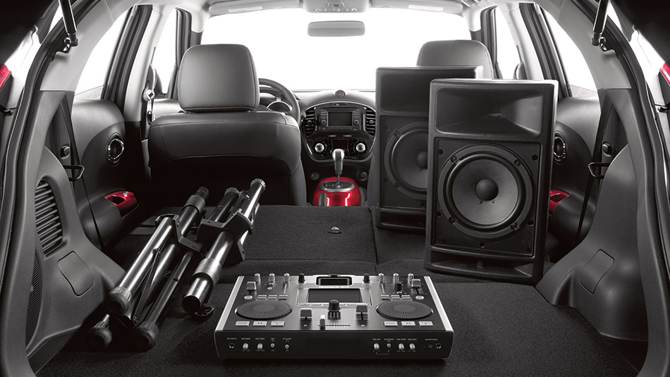 Juke’s dash is easy to figure out, the main gauges being white numbers on a black background with a digital orange trip computer between the tachometer and speedometer. There’s the usual power door locks, windows and mirrors, but oddly the Juke offers only a tilt steering wheel. Most vehicles now come with tilt-telescope wheels.