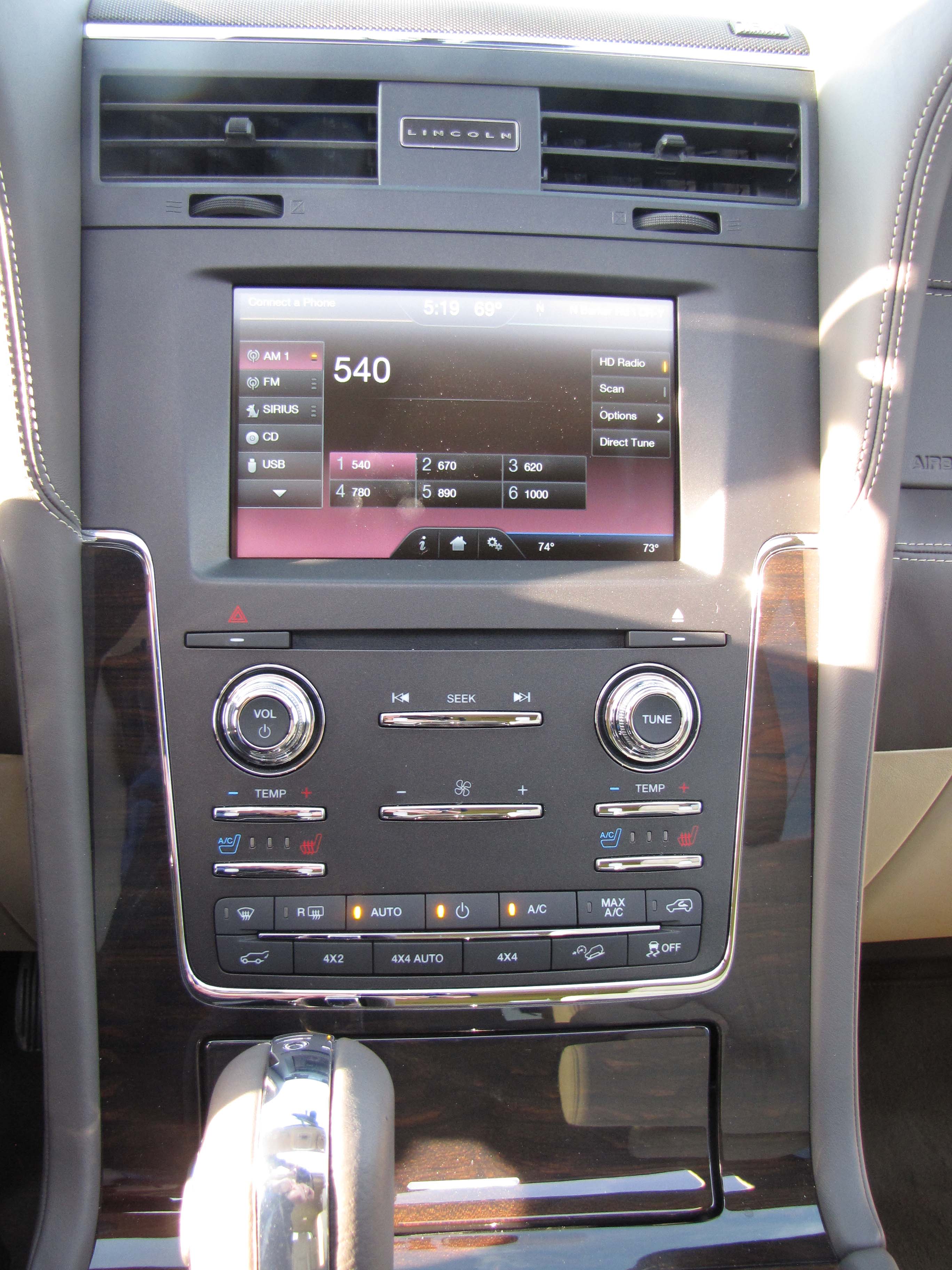 The Ford/Lincoln touchscreen works well and is broken into four quadrants for radio, navigation and other controls. The Synch system is available for the digital radio, this one a THX system that sounds great. Other tech items include a rearview camera, blind-spot warning system in the outside rearview mirrors, power folding side mirrors, sunroof and, like the Expedition, much-needed power deploying running boards.