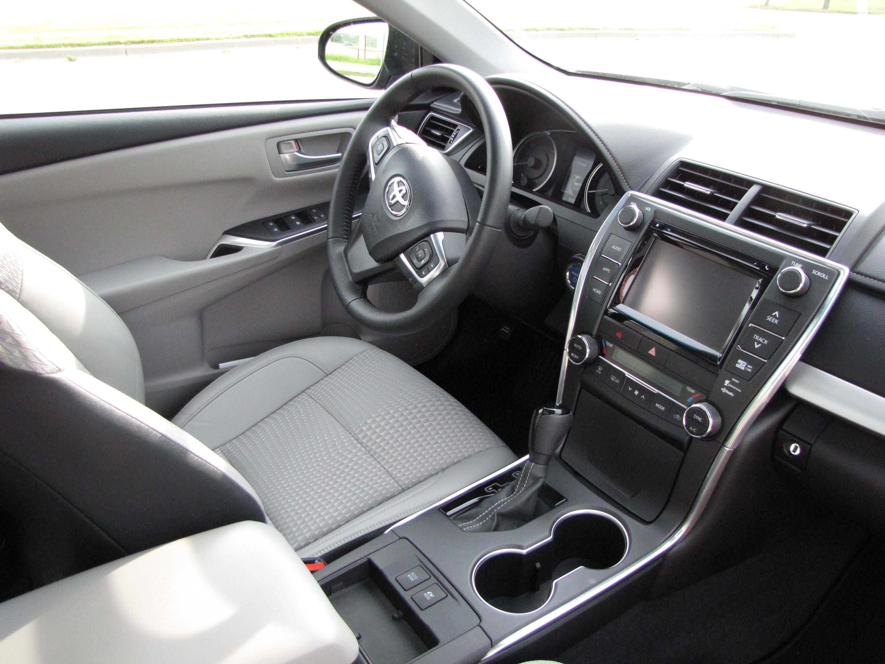 Camry’s steering wheel is a manual tilt/telescope model with radio, phone and trip computer controls on the hub.