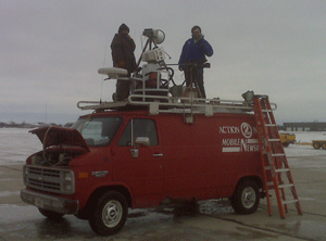 OK, back to the bag phone. A fairly new technology at the time for TV stations was the ability to cover events live. A microwave signal, with a sending unit on the “live truck” similar to the WBAY one on the right, and the receiving unit, usually on the tallest point the TV station had access to like its tower. Here’s where the bag phone came in. The photographer with the live truck needed to talk to a person at the station to line up the signal. Can’t remember how much but heard it cost a lot per minute to talk on that phone and that was voice only. This was the coolest thing in the world for us at the time. I’d hop on it after a live shot I did to firm up my plans after I got off work. I remember one time calling my dad and asking him where he thought I was. Like he’s going to know anyway since he lived in Milwaukee while I was up in Green Bay. I’d give him a play-by-play, I’m Oneida Street dad, I’m going by a Mobil gas station, now a Rocky Rococo, Bart owned a couple of those, now Lambeau Field where the Packers play. New and fun, that’s what it was. Oops, probably shouldn’t have told that story.