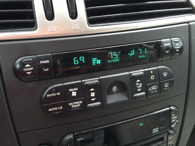 Now cars come with air conditioning where the temperature can set by the driver and the passenger and have a different temp. This image is from our 2008 Chrysler Pacifica where the driver and passenger can set the exact temp they want. It’s old technology now because the new cars can do so much more.