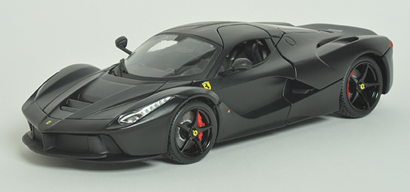Still, Bburago gives them what they want with its new matte, or flat, black LaFerrari in 1:18 scale. The model is tucked inside a Styrofoam shell inside a racy red box with foil-like silver lettering on it. This is part of Bburago’s move to more upscale models, somewhat beyond the toy market, but still high in value.