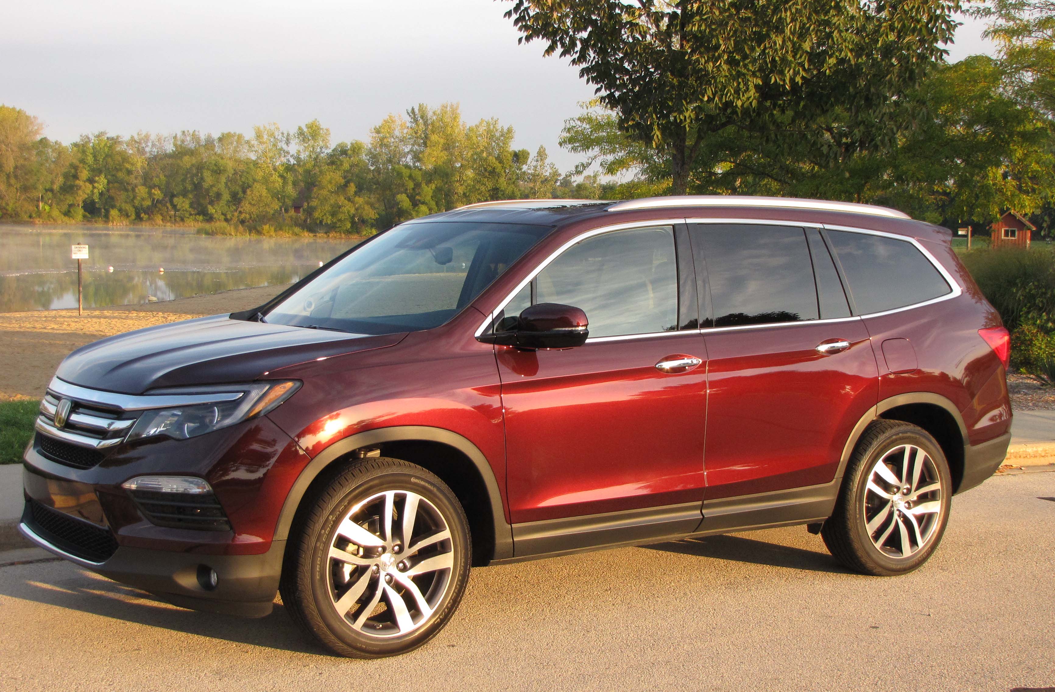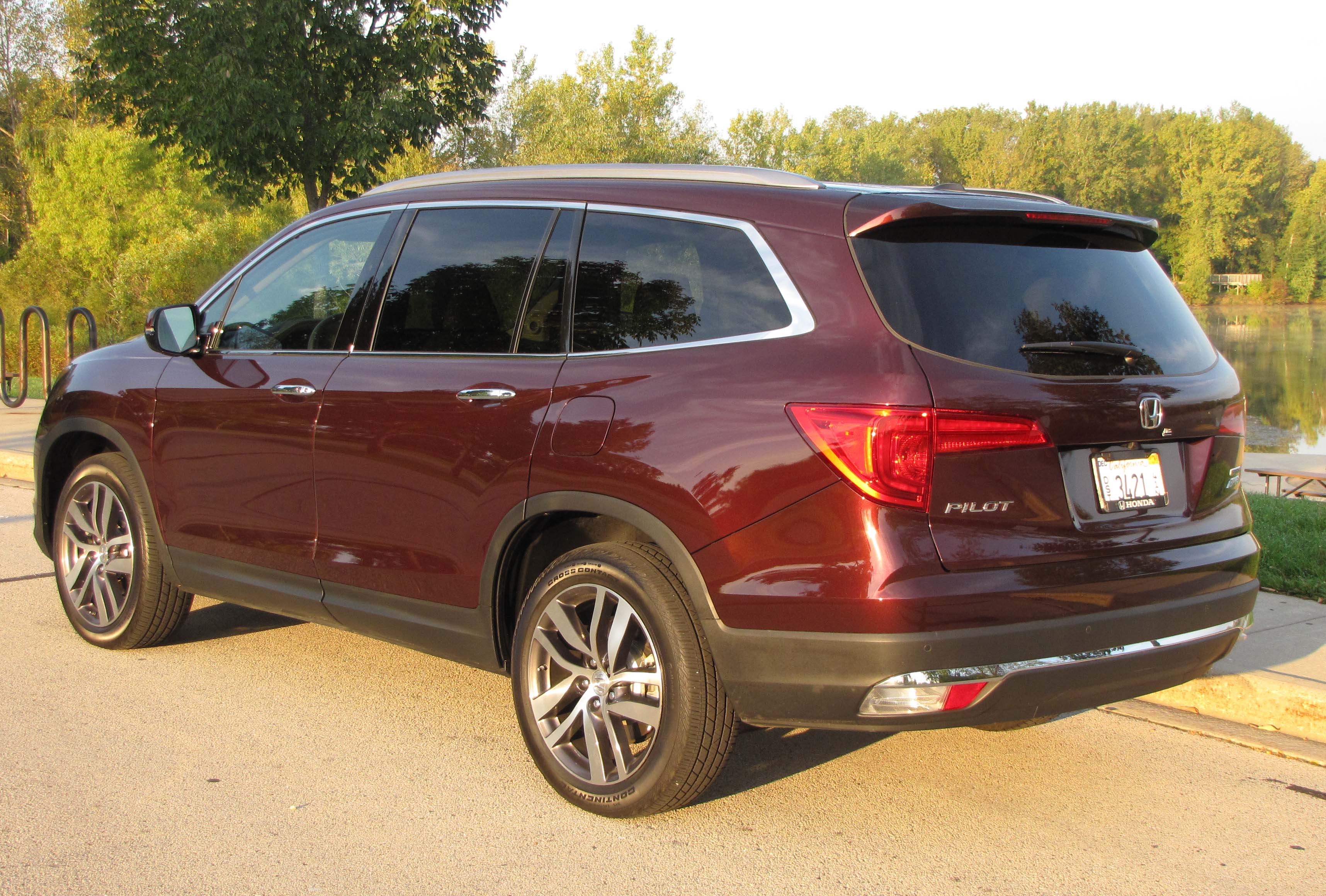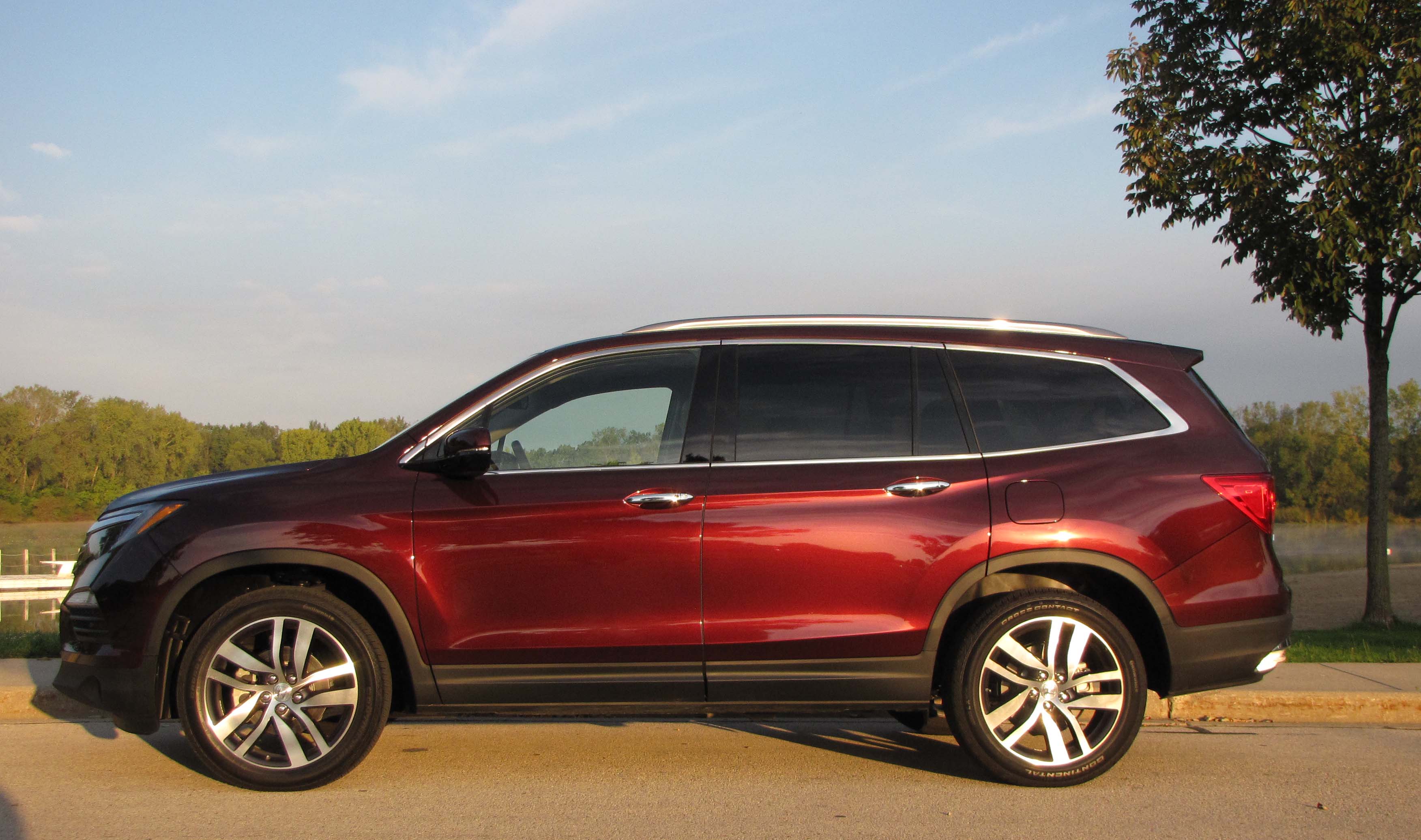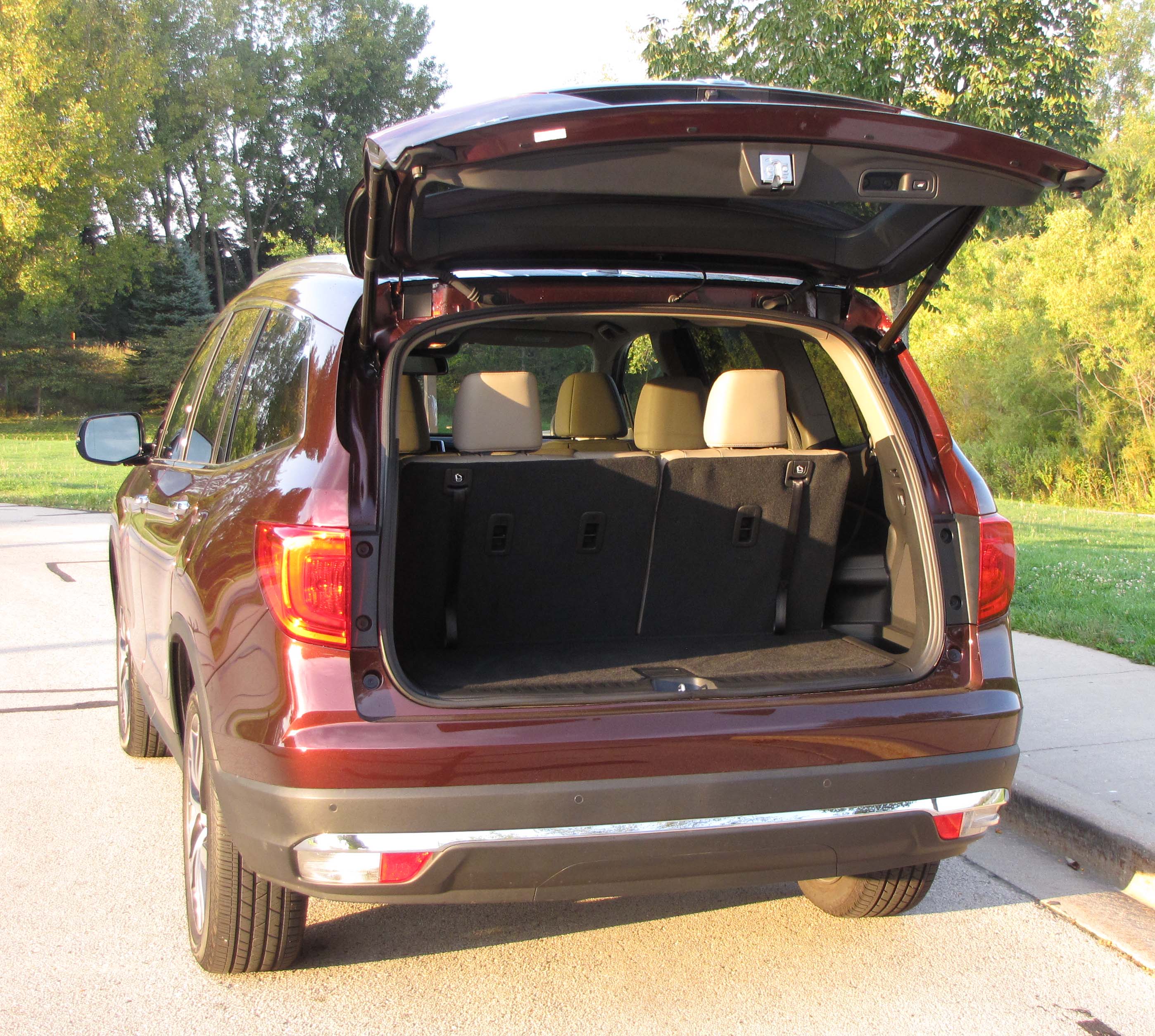 The engine packs plenty of power. Freeway entry speed is easily reached (280 horses under the hood) and the tested Pilot is rated to tow 5,000 lbs. My Pilot was a dark cherry red Touring AWD model; that’s one off the top-level Elite.