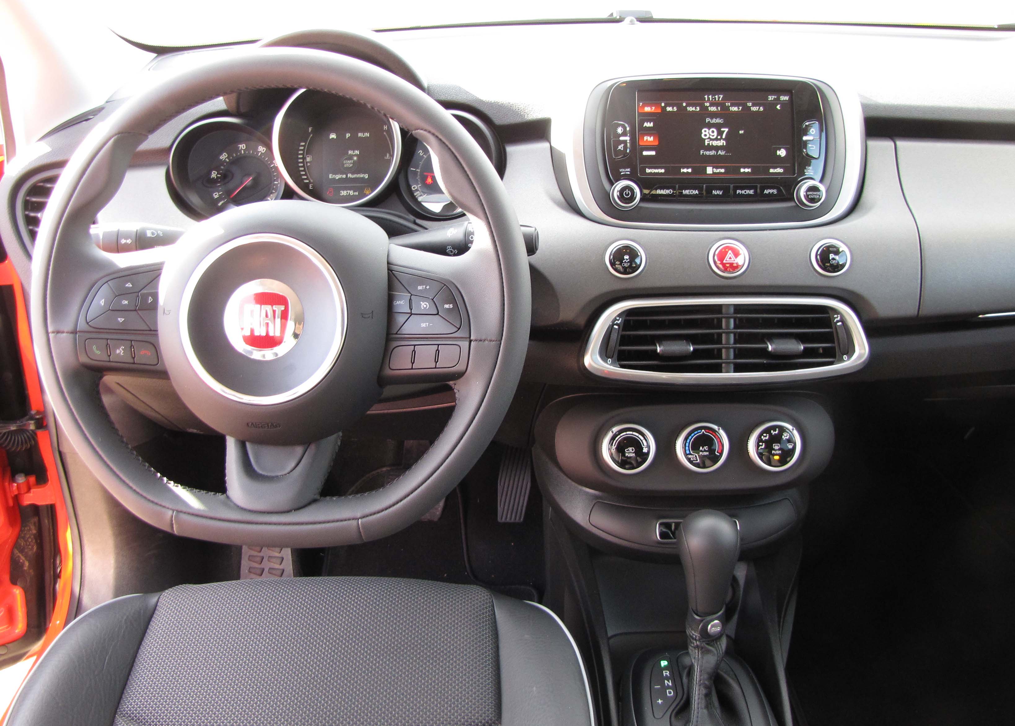 Fiat also provides a tilt/telescope steering wheel too, but no matter how I adjusted it, the wheel partially blocked my view of the main dash gauges. The A pillar also is large, as in so many vehicles these days, and that creates a bit of a blind spot. Luckily there is a bit of space between the side mirrors and the roof pillar to lessen the blockage.