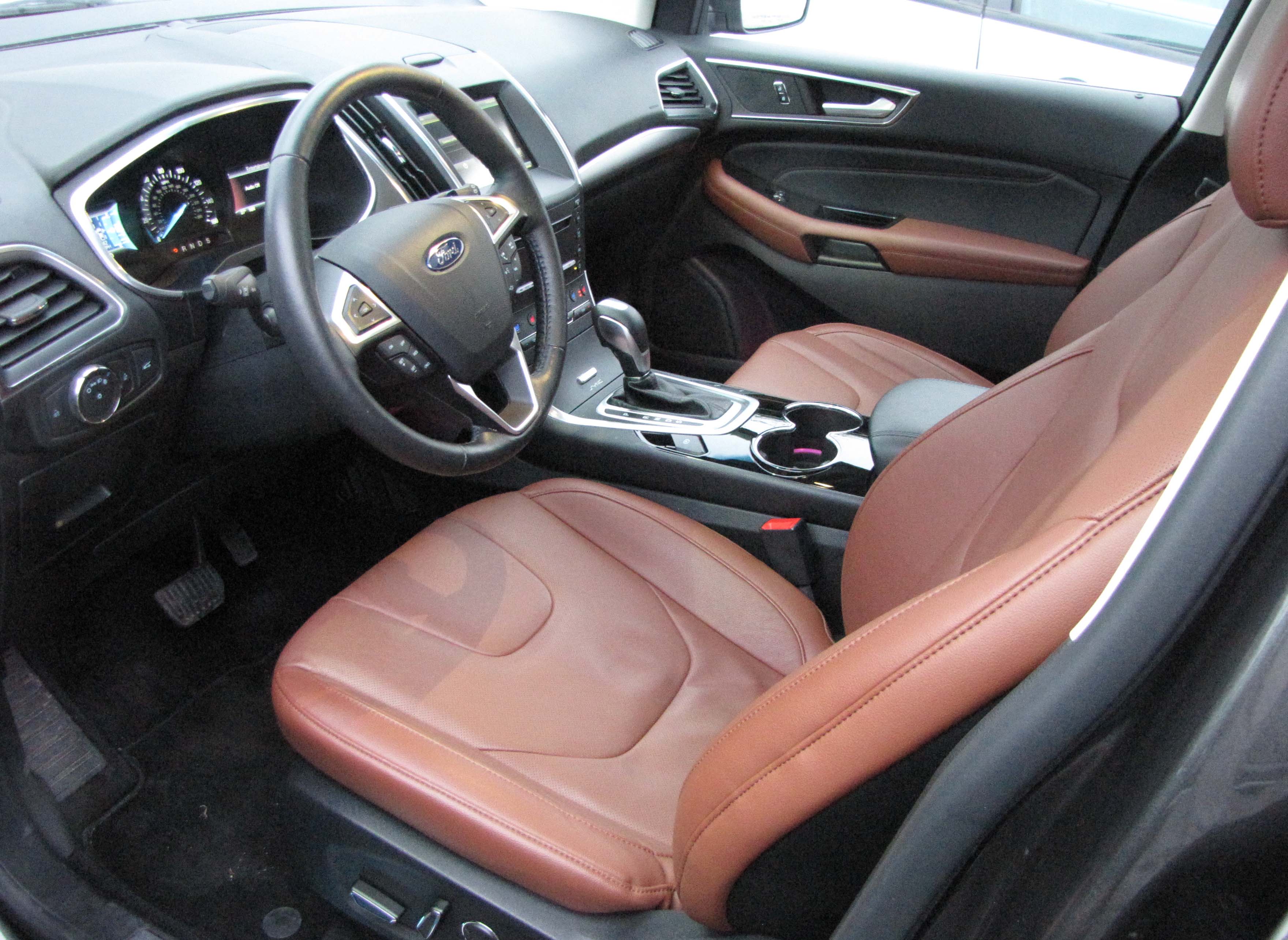 Along with its ride, the family will like Edge’s quiet interior and its style and comfort. The Titanium model has leather seats and this one featured a two-tone look with a black over brown interior. Seats were well contoured, comfortable brown leather while the dash and doors were black. The leather is soft and rich feeling too.