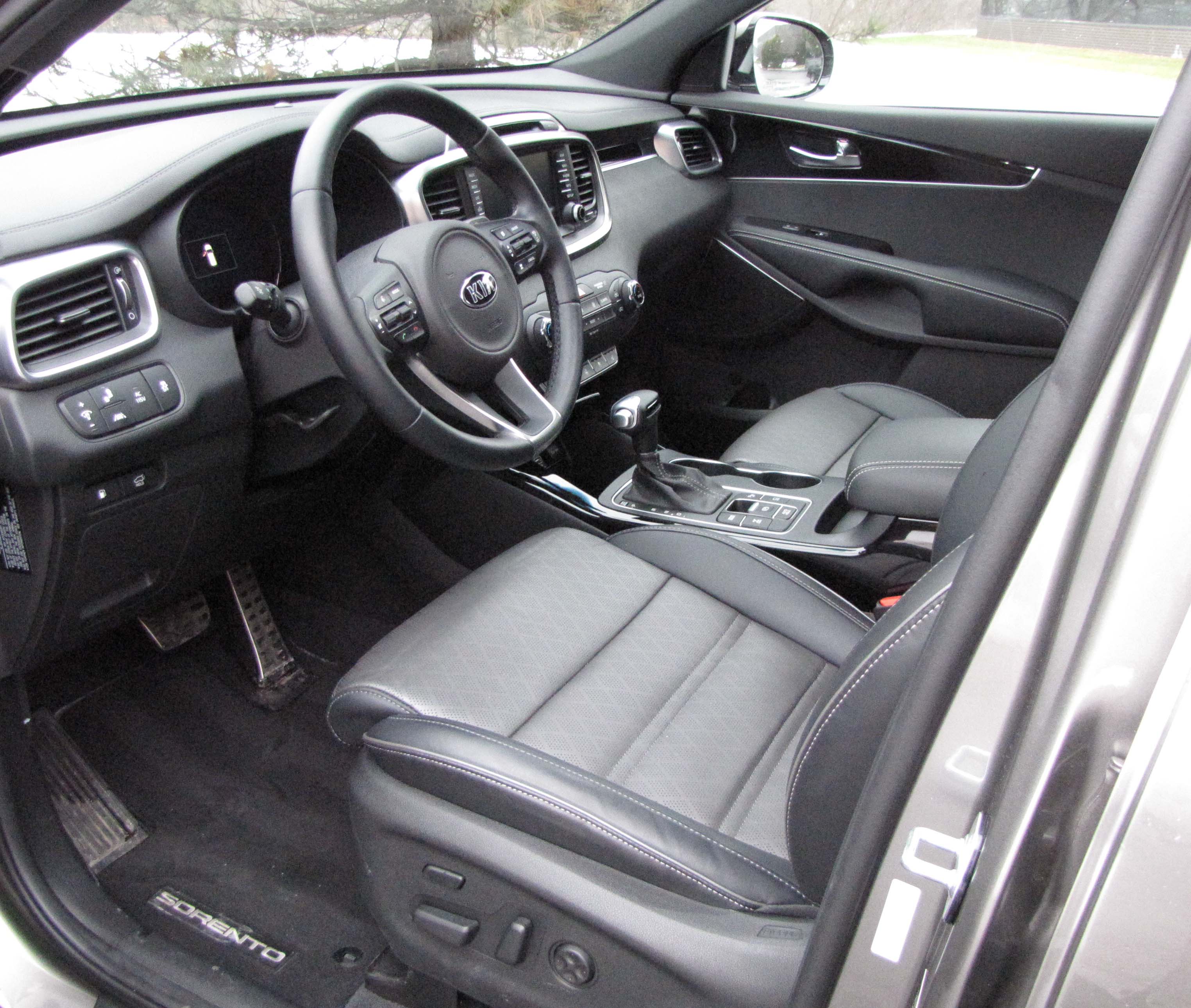 Inside the dark (titanium) gray Sorento were black leather seats with gray stitching, along with leather steering wheel and soft-feel dash with a pewter-look trim. The test crossover also had black gloss trim on the doors and passenger’s side dash.