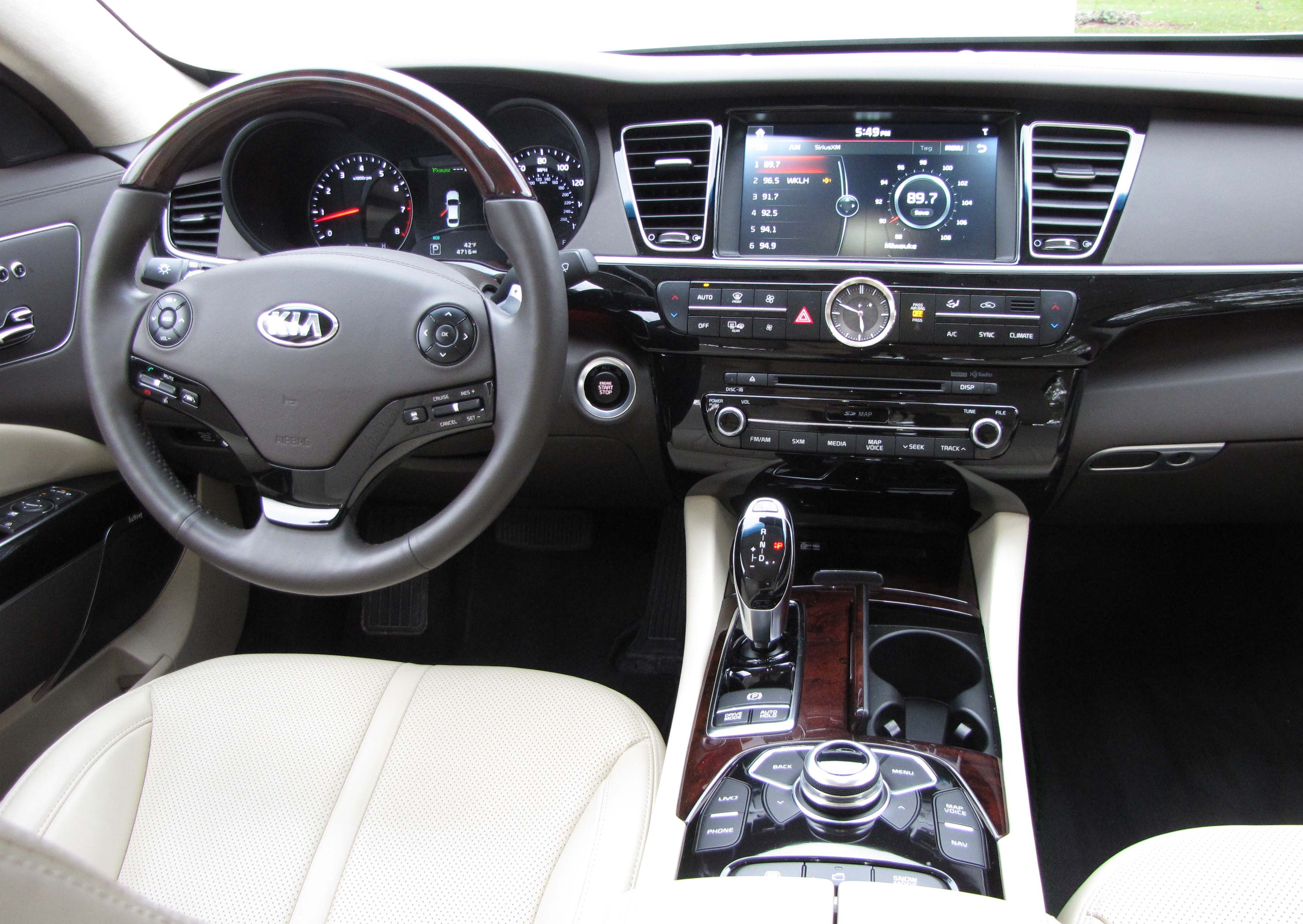 If power is more vital to you than gas mileage, the K900 also offers a 5.0-liter V8 that delivers 15 mpg city and 23 mpg highway. I drove one a few years back and got slightly lower gas mileage that go-round. The V8 creates 420 horsepower and delivers 376 lb.-ft. of torque. That model also rides on 19-inch tires whereas the test model had 18-inchers.