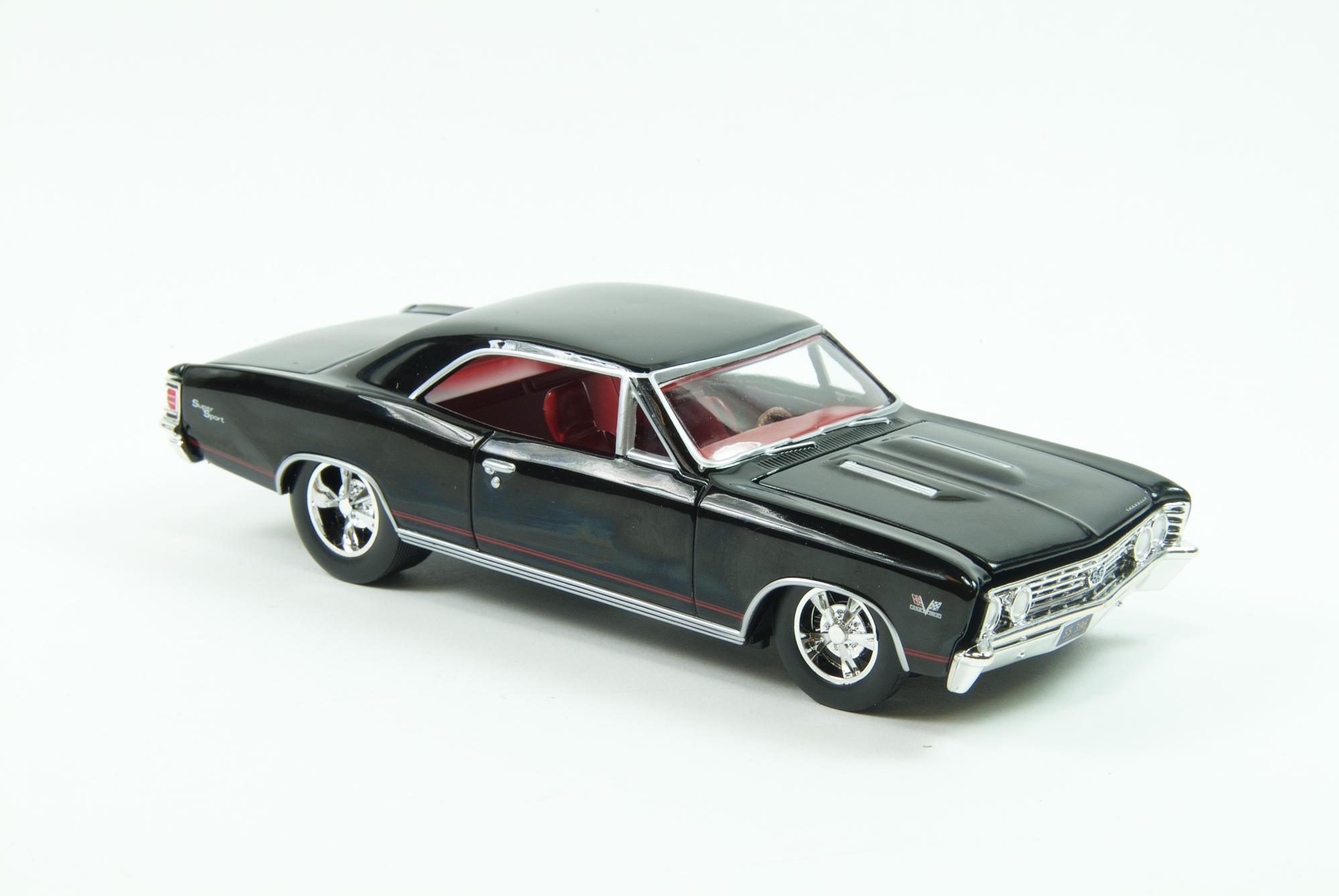 AutoWorld has re-created a variety of Chevelles through the years, including a convertible version of the ’67 in 1/18 scale. Now comes the 1/24 scale model that easily fits into plastic modelers’ collections. Plus it takes up a little less shelf space than the larger scale.