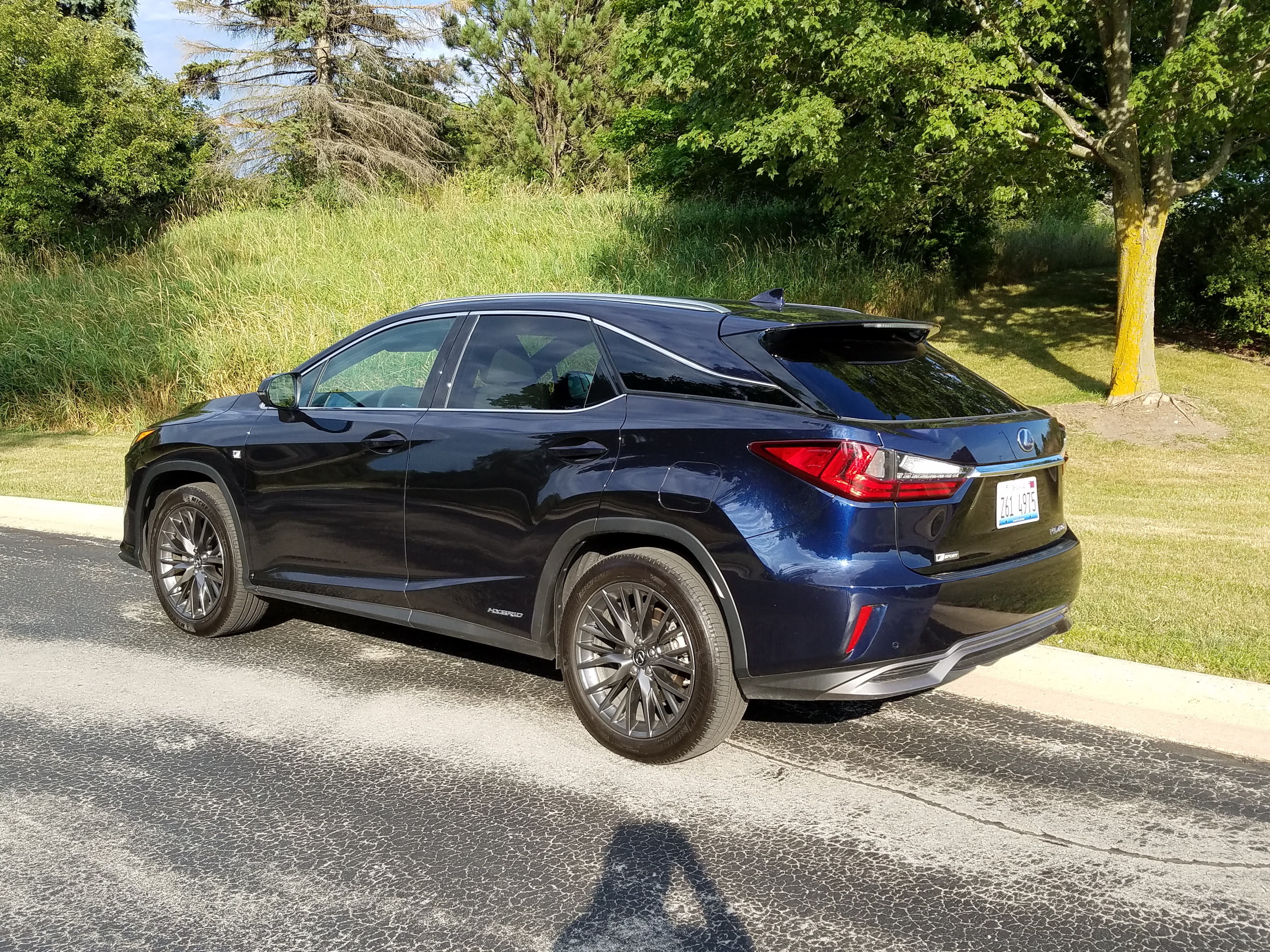 A base RX 350 with front drive and an 8-speed automatic features a powerful 3.5-liter V6 that creates 295 horsepower, up from the previous model’s 270 horses. The tested swantky dark metallic blue (Nightfall Mica) was an RX 450 h F Sport that combines a slightly detuned 3.5-liter V6 with an electric hybrid system to create 308 hp. Both models drink regular 87 octane unleaded, so no special need when you cruise into a service station.