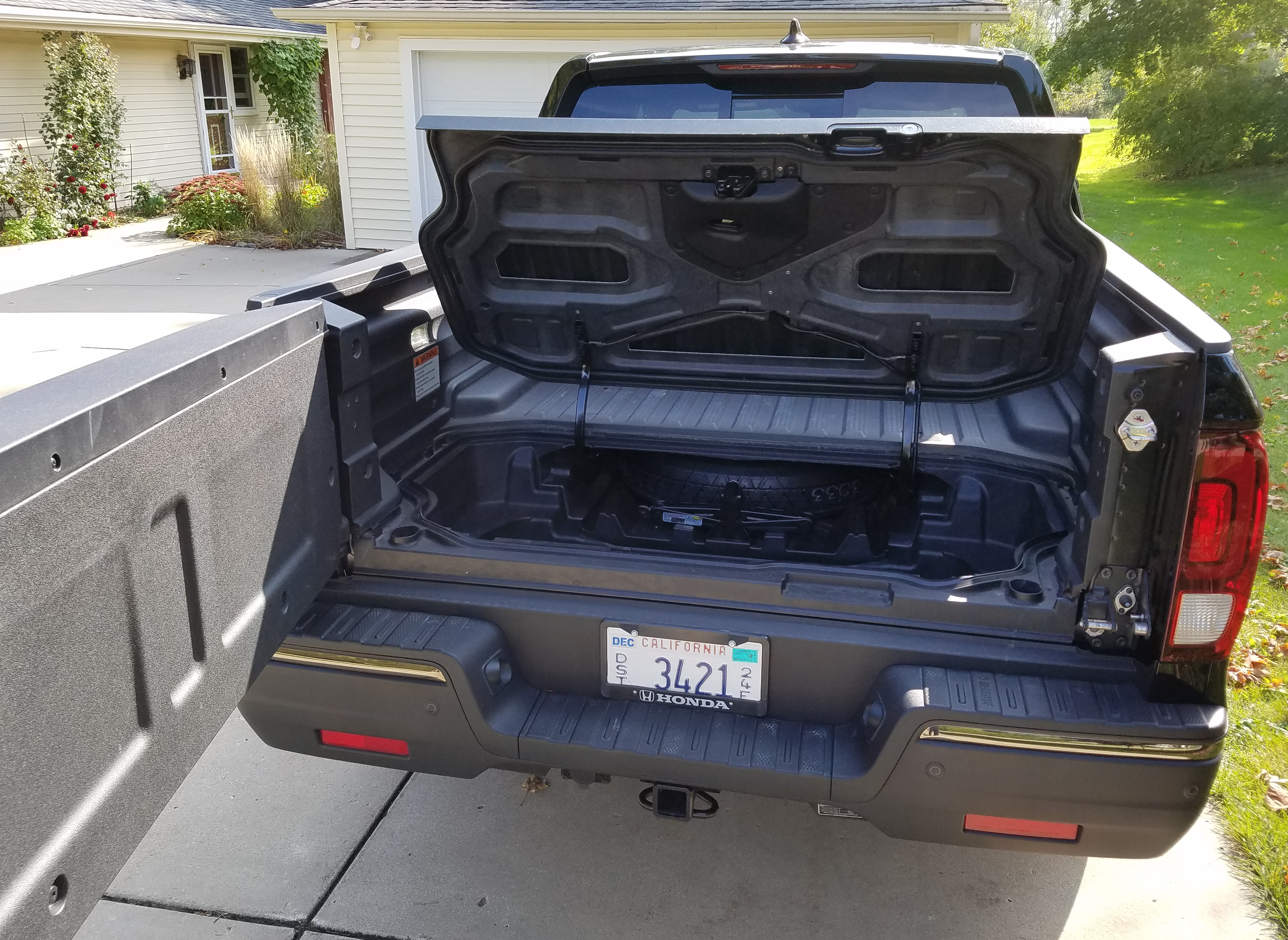 For the record, the Honda’s bed is lined and will hold 34.0 cubic feet of cargo. It’s 5 feet 4 inches deep and 4 feet 2 inches between the wheel arches.