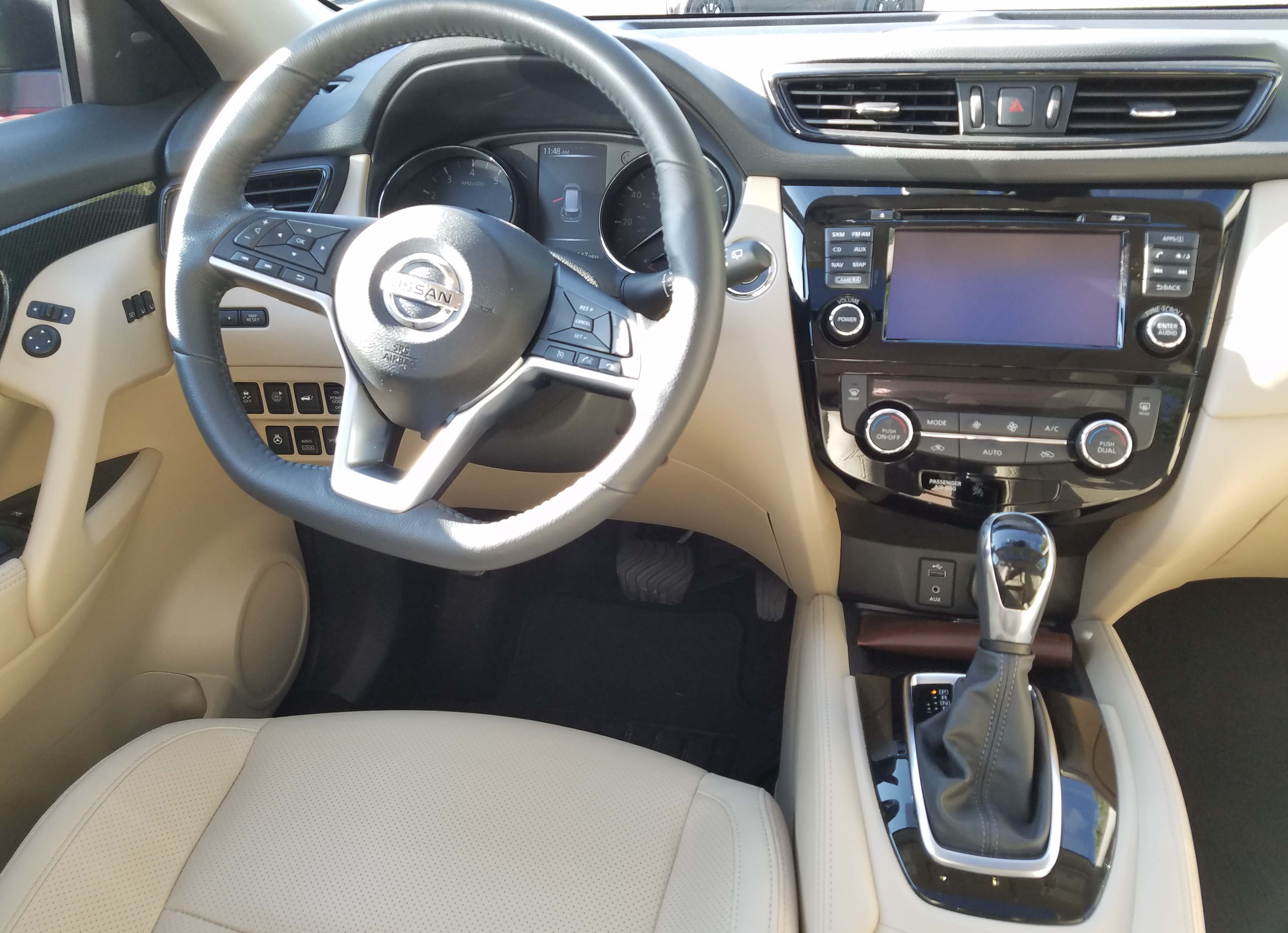 Climate control knobs and buttons for the dual-zone system are fine and the Rogue’s heater is a strong one. It not only kept my feet warm on cold mornings, it heated the interior quickly. I had to turn the heat level down regularly in fact.