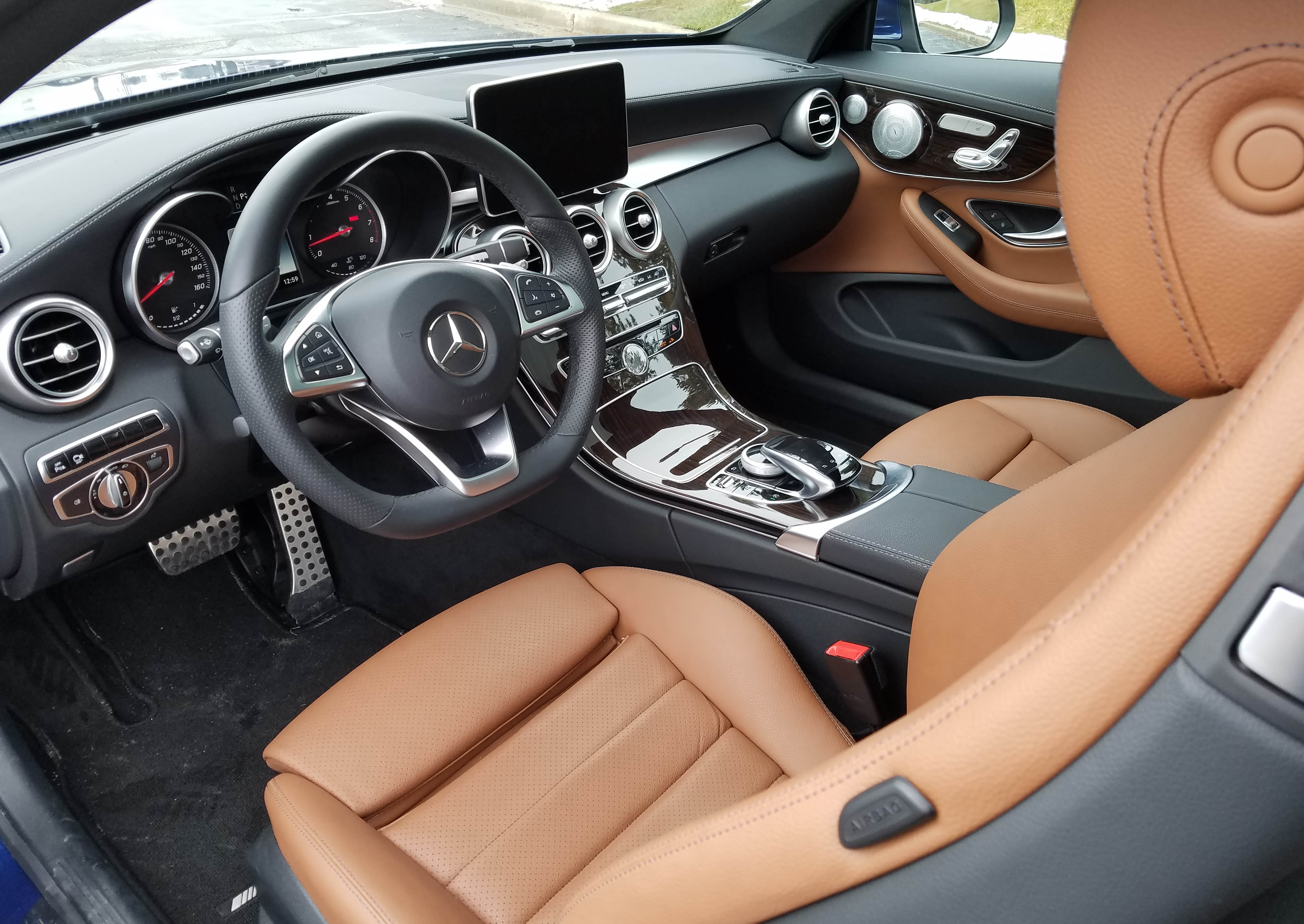 The C coupe rides on the same smoothing 111.8-inch wheelbase and weighs a bit more than the sedan at 3,770 lbs. The car feels deliciously well balanced.