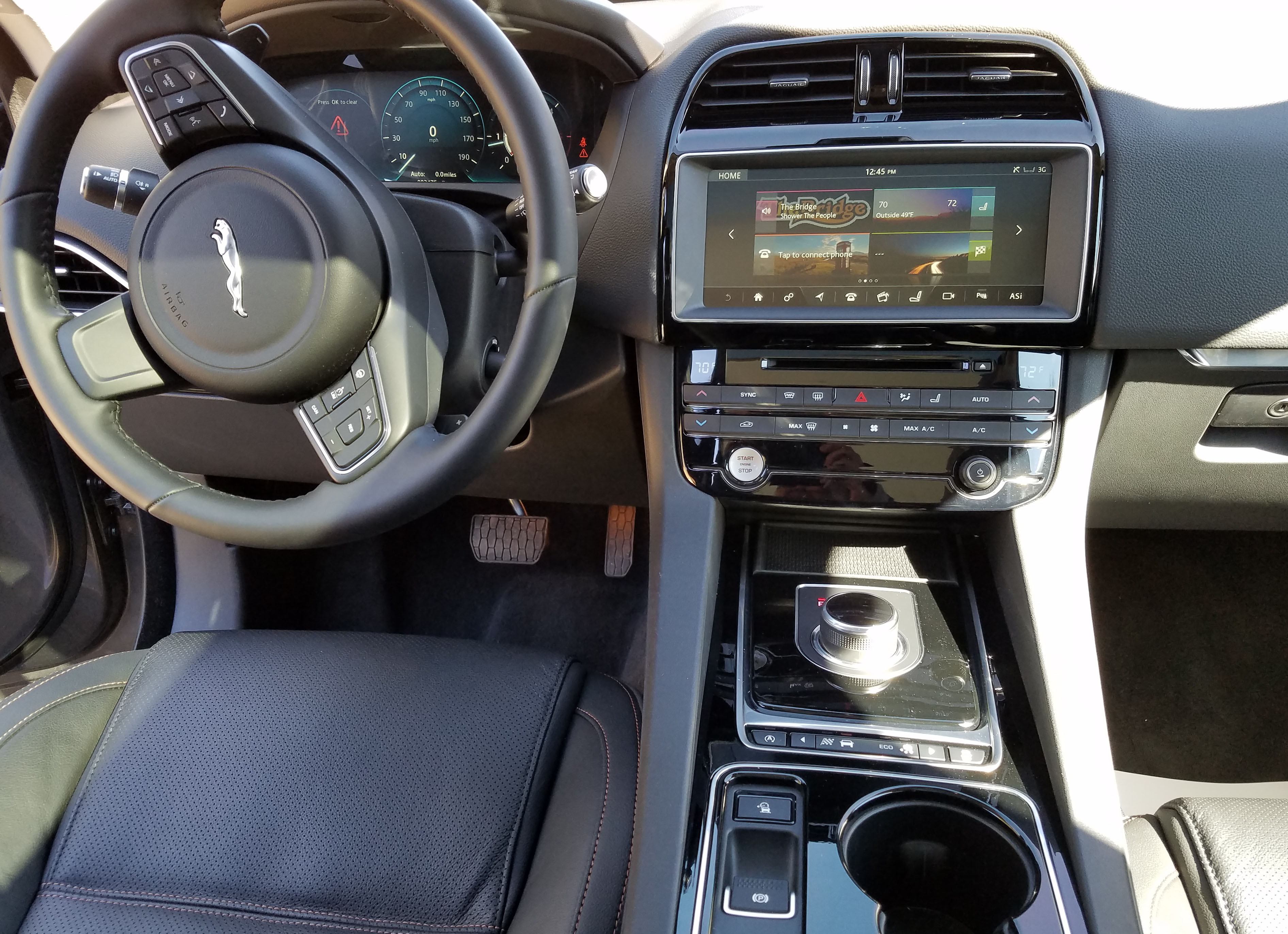 As with the XE last week, there are four drive modes to choose from on the console, including Dynamic, Normal, Eco and Rain/Snow. Dynamic aids the acceleration and firms up steering effort. Actually the F-Pace handled well in either Dynamic or Normal mode, just steering effort increased moderately in Dynamic.