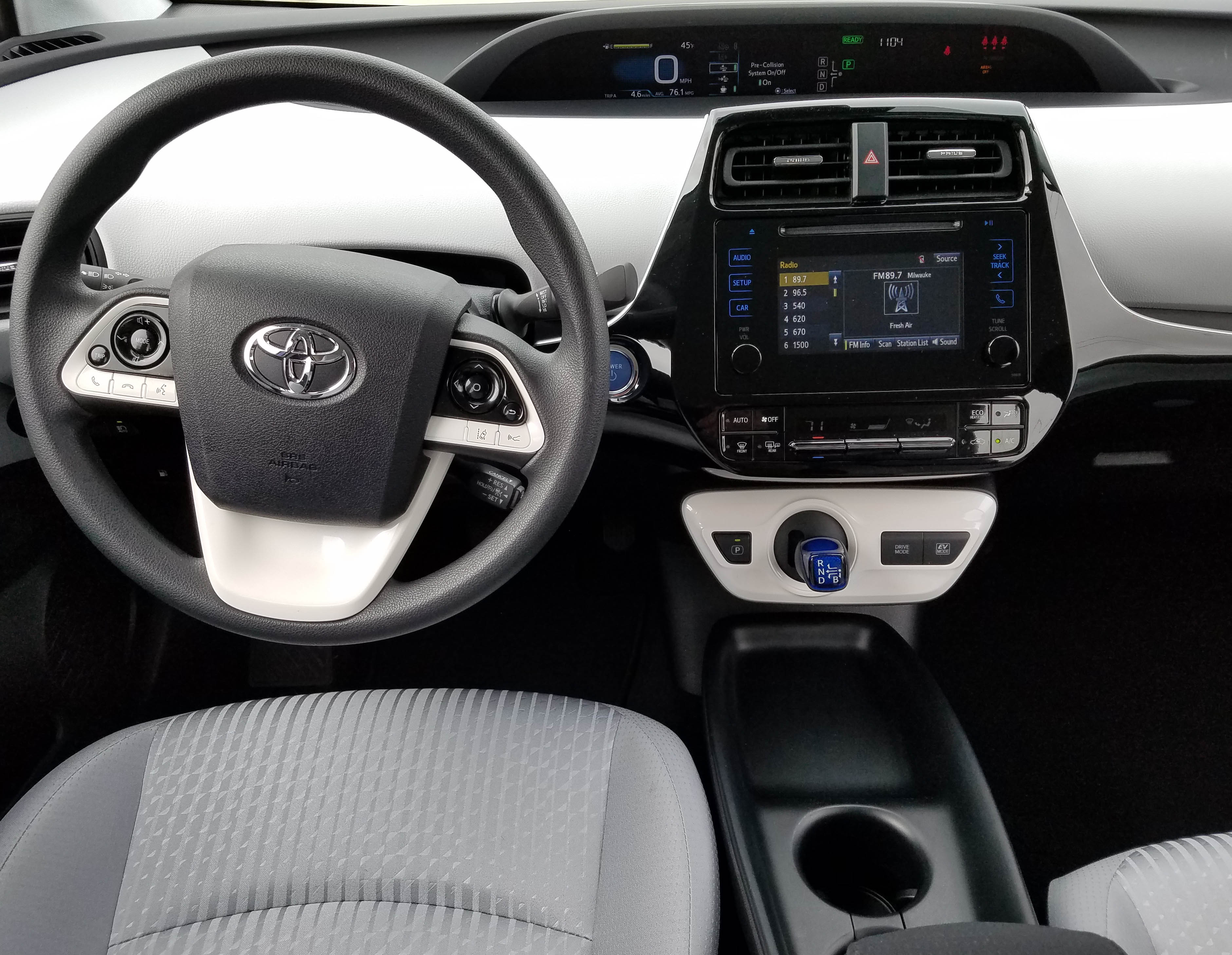 This being a low-cost Prius model, there were no heated seats or a sunroof.