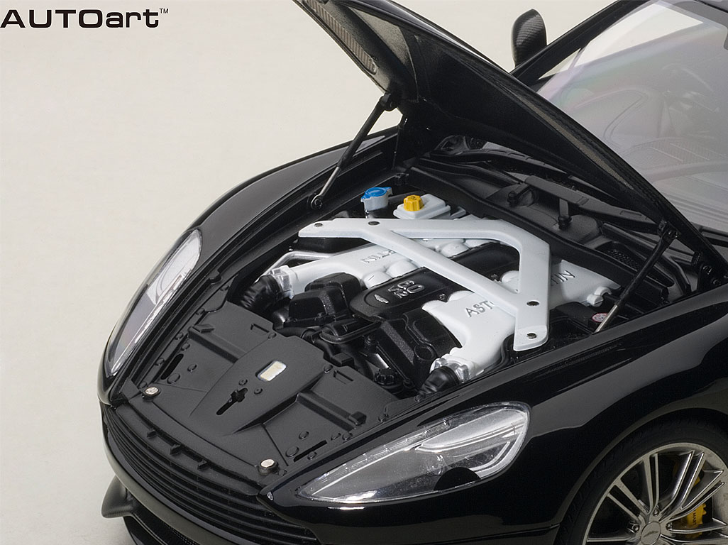 Likewise Autoart has recreated that beauty in 1/18 scale with its composite-bodied Vanquish, in sparkling black for the review model. Other colors are available, but bathed in black this baby looks long, lean, and sexy, just like the real beast.