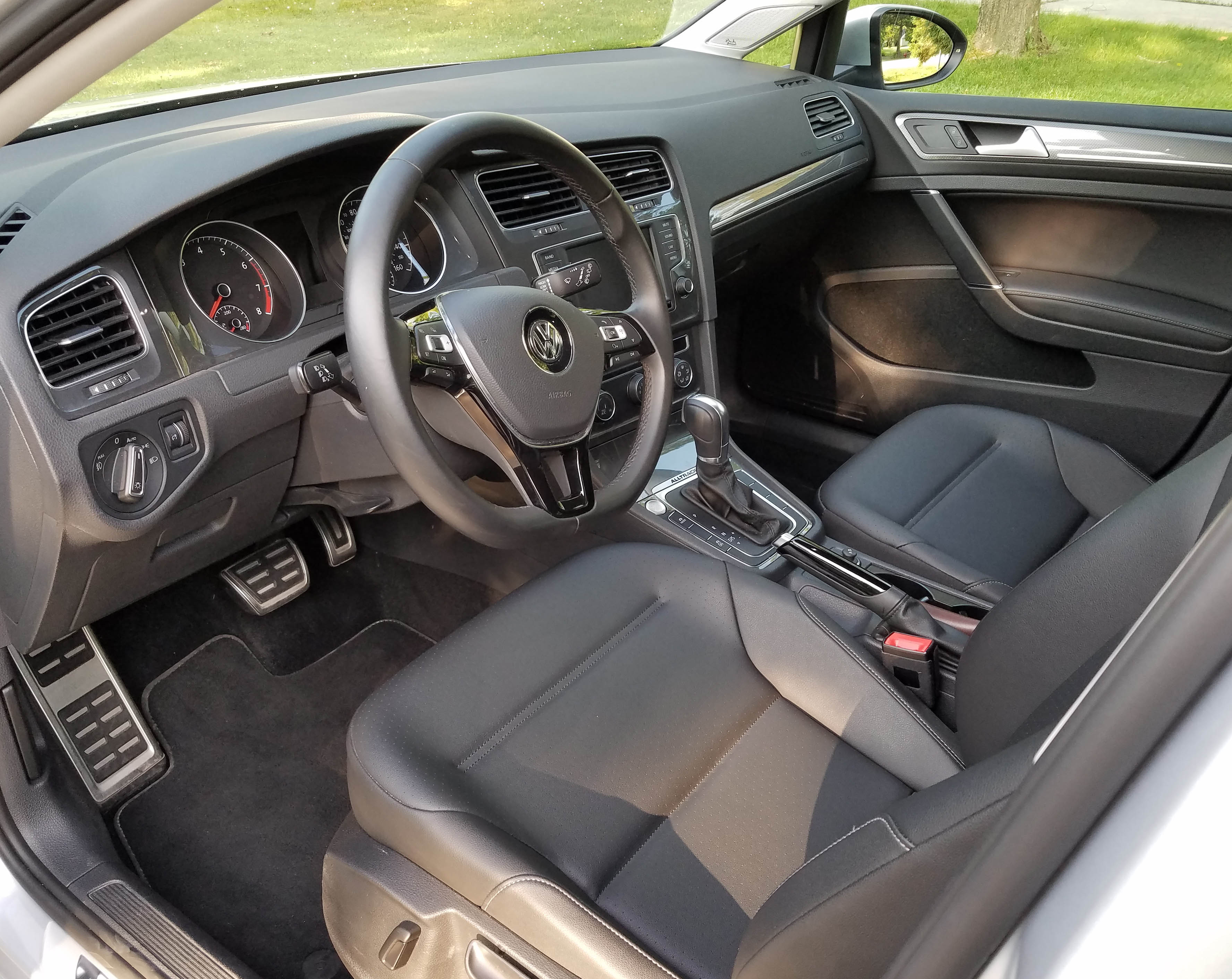 The interior feels roomy and I carried up to four adults in the Golf and everyone found it had plenty of head and legroom. Being a wagon there’s a hatch in back, with wiper, and the rear seats split and fold flat to boost cargo room, which is generous. With rear seats in place it measures 30.4 cubic feet and with seats down it balloons to 66.5 cubic feet.