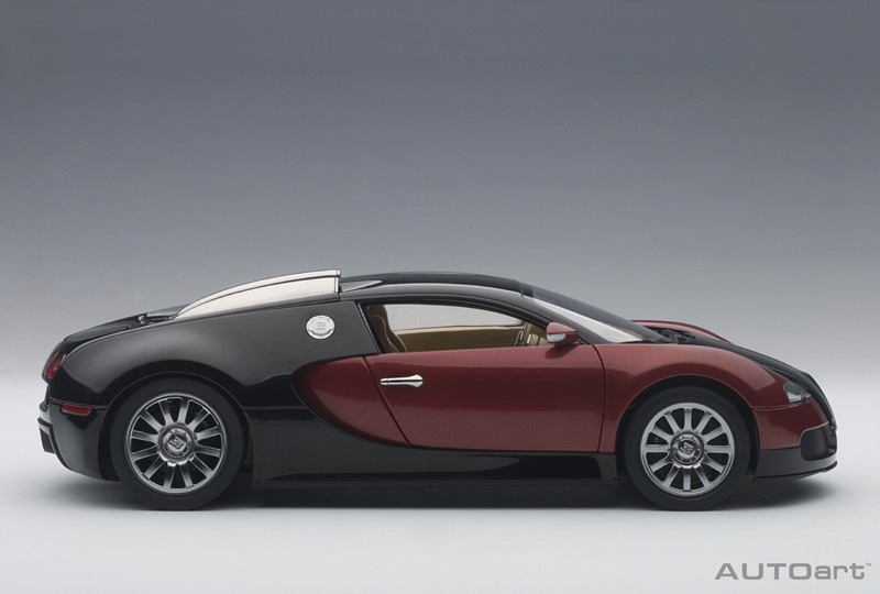 But lucky for us car lovers with short purse strings and thin wallets Autoart keeps churning out beautiful models of exotics, racers and more. While these 1/18 scale wonders aren’t cheap, they are attainable. Latest example is the gorgeous Bugatti EB 16.4 Veyron in black and red. This matches the original car, chassis No. 001, and it’s a beauty.