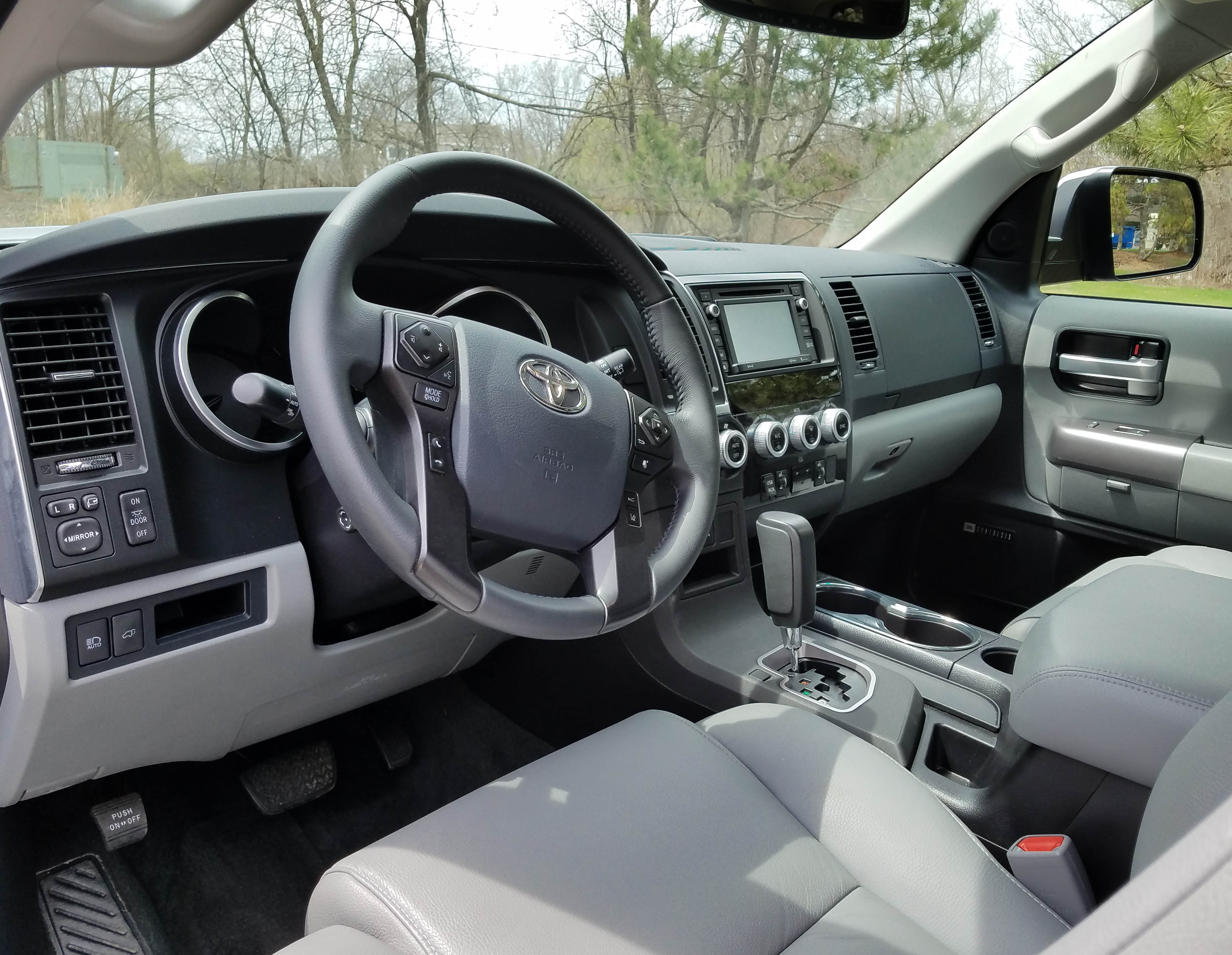 Power is strong, as you’d expect in a large ute. All Sequoias feature Toyota’s reliable 5.7-liter iForce V8 that creates a solid 381 horsepower and 401 ft.-lbs. of torque. With the SUV weighing in at nearly 6,000 lbs. that power is needed to haul it up to highway speeds. But it responds quickly and is well suited to its 6-speed automatic transmission.