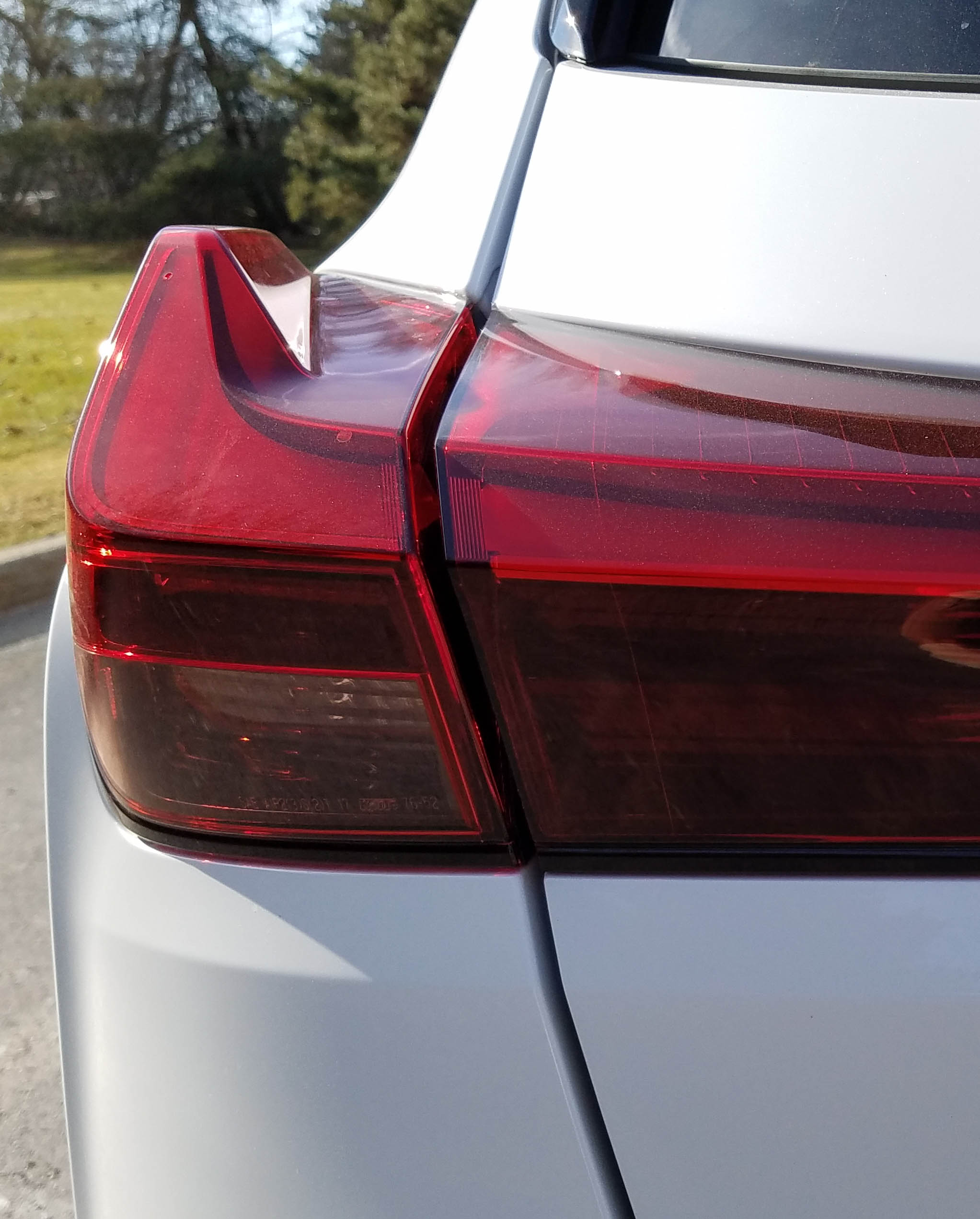 Hits: Finned taillights, cute exterior, nice dash and colorful interior, heated/cooled front seats, big infotainment screen, sunroof, and hatch with wiper. Quiet inside, three drive modes, light handling, supportive seats.