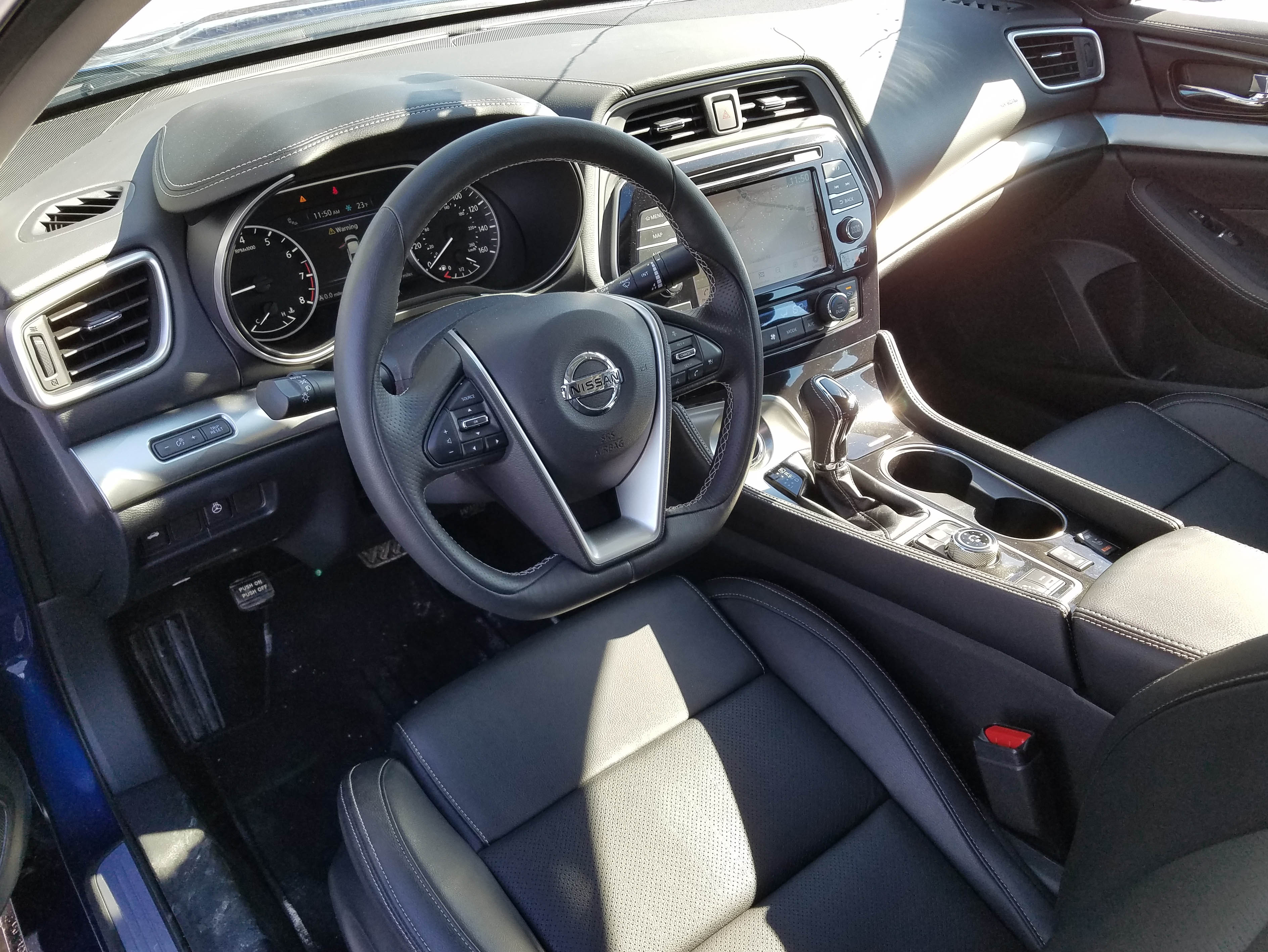Certainly from a tech standpoint the Maxima is up to date. In fact, it includes its Safety Shield system with emergency braking, high-beam assist, and lane departure (you can turn it off). A backup camera and blind-spot warning also are standard.