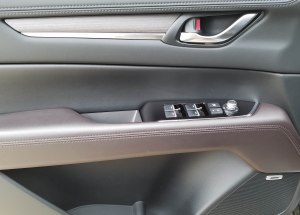 The Mazda’s interior looks rich and luxurious, both in its leather trim and aided by satin chrome trim around the dash’s gray wood insets, on the air vents, and door release handles. Then there was black gloss trim on the console and by the control buttons on the door armrests.