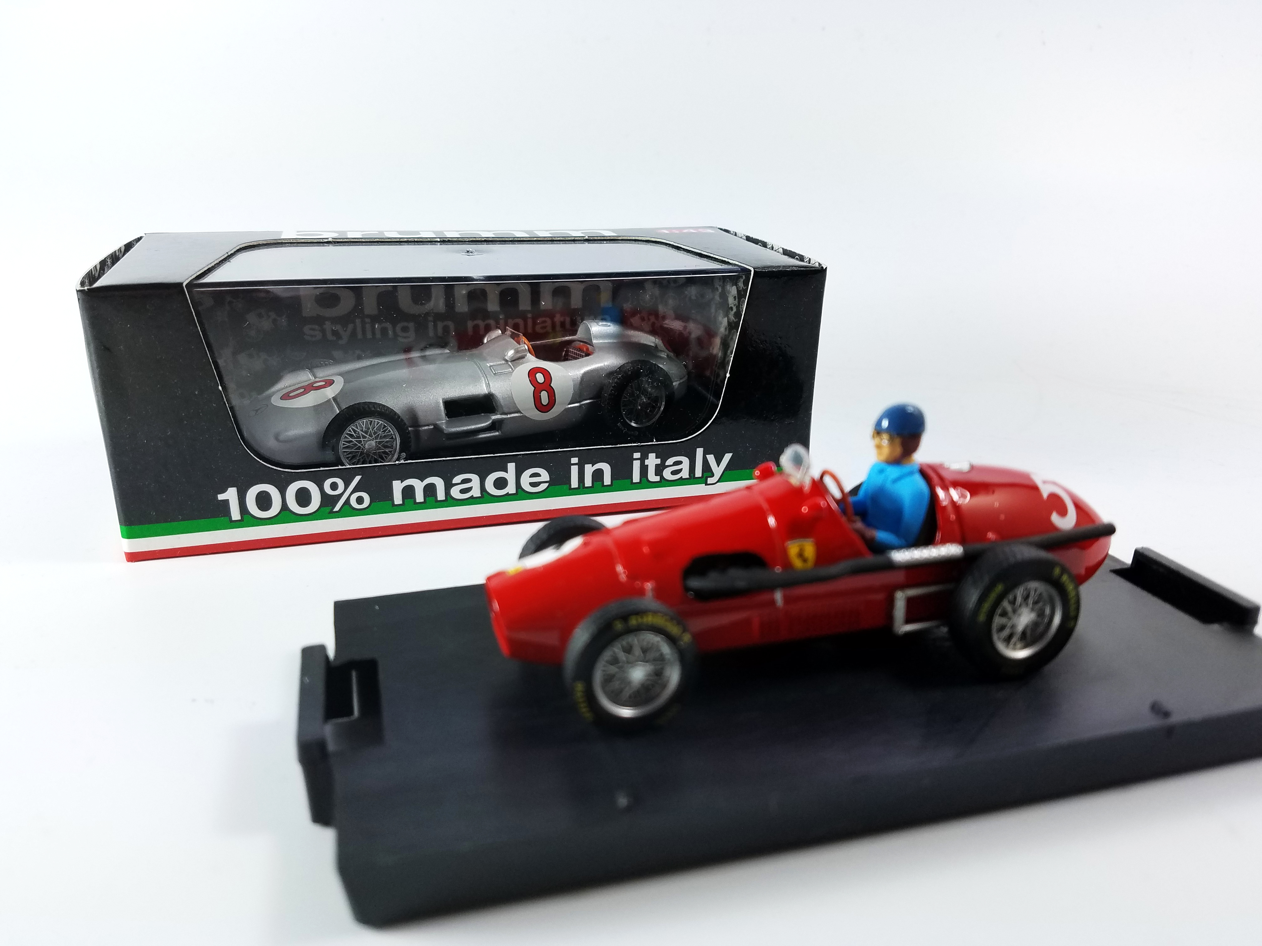 Now Brumm delivers two 1950s Formula 1 racers, a Mercedes and Ferrari driven by world champs Alberto Ascari and Juan Manual Fangio. Unique to these releases is the figure of Ascari at the wheel of his 1953 Ferrari 500F2.