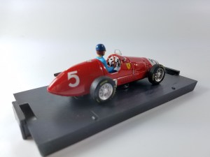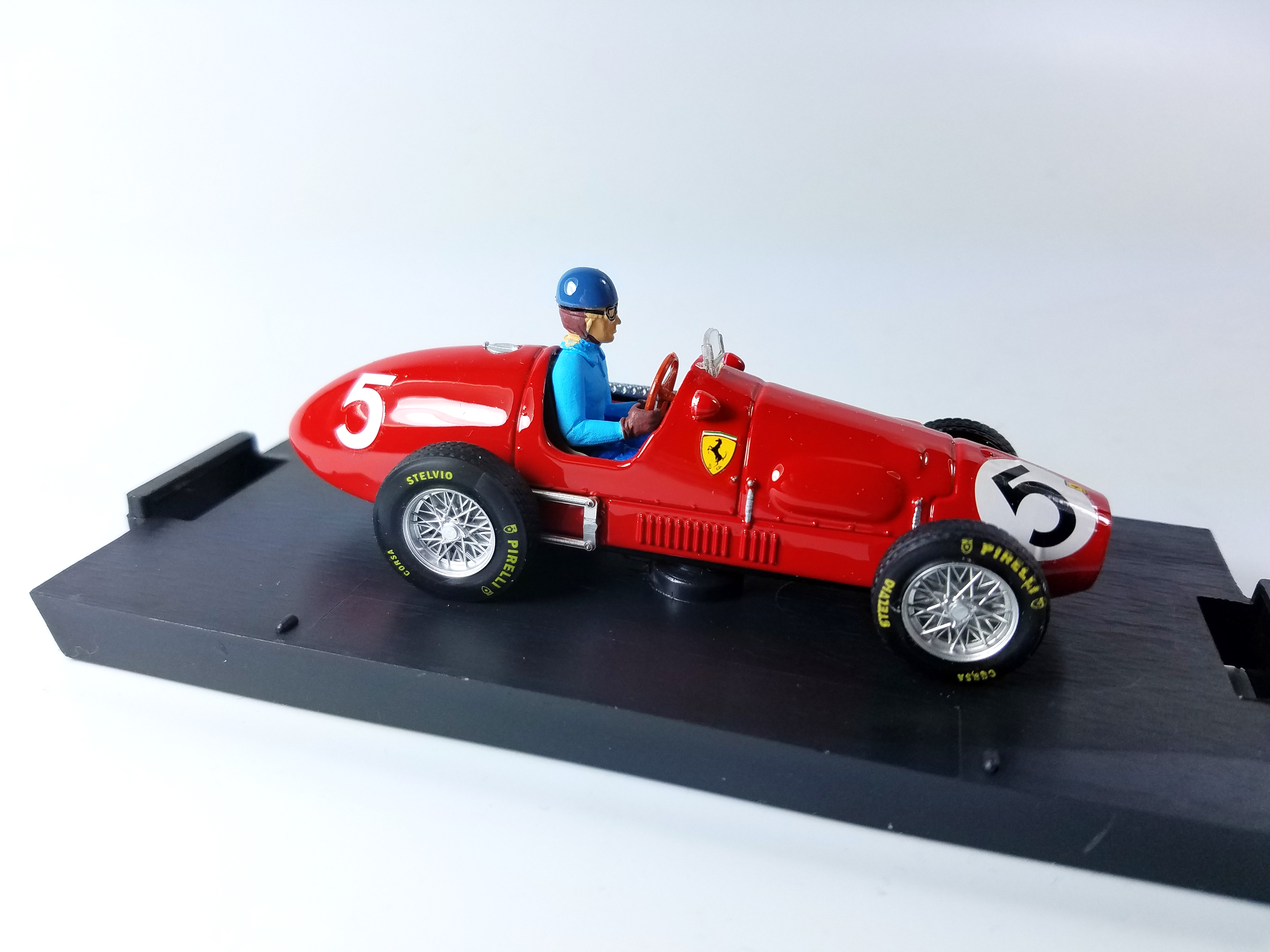 The red Ferrari is No. 5, with a figure depicting Ascari as he won the 1953 Grand Prix of Great Britain. He also went on to be F1’s champion that year.