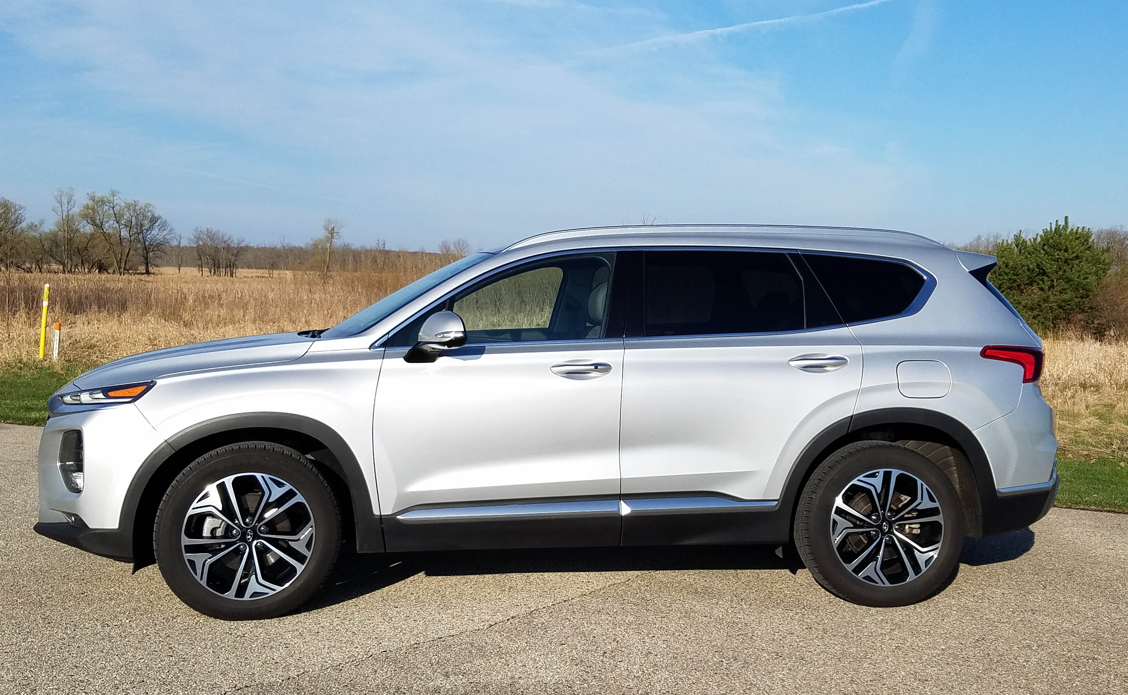 Acceleration is almost sporty at times and ride is excellent thanks to Santa Fe’s 108.9-inch wheelbase and a well-tuned suspension that copes well with crumbling Midwest roads. Santa Fe is a good family hauler because even rough roads are well tamed, no harsh bumps allowed. Its chassis was strengthened for 2019 with more high-strength steel to improve ride.