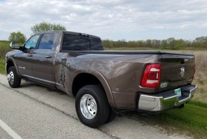 No this thing’s a brute with a 6.4-liter Heavy-Duty HEMI V8 that pumps 410 horsepower and an even more impressive 429 lb.-ft. of torque. When you put your right foot down, the four rear tires (yes, it’s a dually) jump into action, sometimes literally chattering on the pavement. An 8-speed automatic transmission quickly puts the power to the pavement.