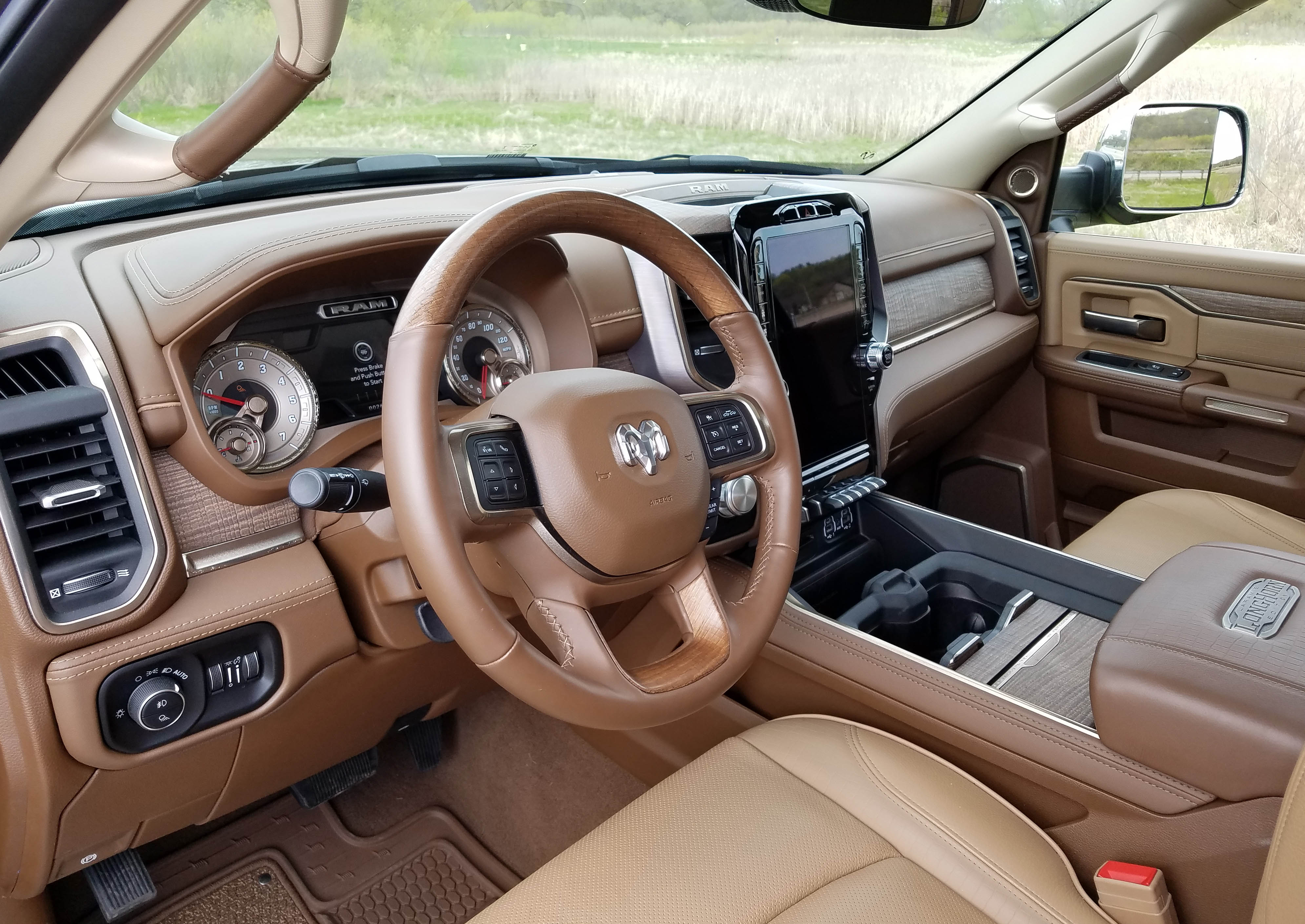 The steering wheel is only a tilt model too, not tilt and telescope. Instead, RAM goes with power-adjustable brake and accelerator pedals. That helps, but I’d prefer the wheel adjust both ways too.