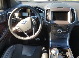 Gas mileage was reasonable for a fairly heavy mid-size crossover. I got 22.7 miles per gallon in a week’s drive. The EPA rates the ST at 19 mpg city and 26 mpg highway. I split my drives pretty evenly between city and highway, so the numbers seem dead on. The Edge drinks regular fuel too.