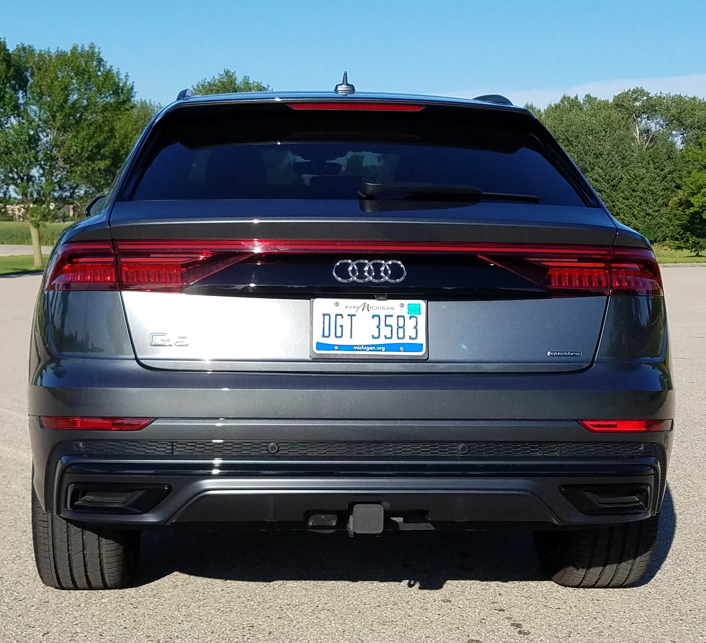 And a few pluses I haven’t gotten to yet. One, the Audi Q8 will tow quite a bit with a tow rating of 7,700 lbs. There’s also a power hatch in back, although it’s quite a reach to press the down button once it’s fully opened. At least it’s tough for us vertically challenged folks.