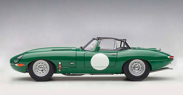 The E-Type Lightweight is another iteration of this famous roadster, a racing version stripped to its shorts to save weight, yet as identifiable as any E-Type. Autoart’s gorgeous opalescent dark green model in 1/18 scale sets a high bar for detail, and its $220 price tag indicates its preciousness.