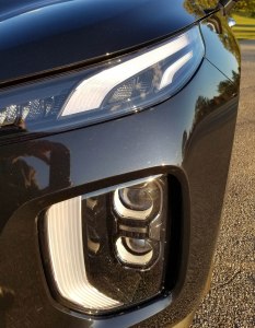 Let’s start with the eye candy. Palisade’s grille is stout with chrome nubs protruding to give its nose an interesting texture, and then there’s a swoosh of light cascading from the outer fender down to frame the two LED running lights and then a thin headlamp between that swoosh and the distinctive grille. In back are tall LED taillights (part of a $2,200 package that also includes sporty 20-inch alloy wheels.) Otherwise the body is a smooth rectangle that looks elegant atop those spiffy wheels.